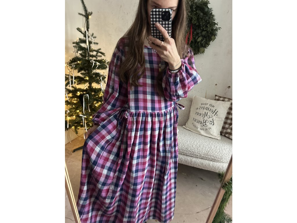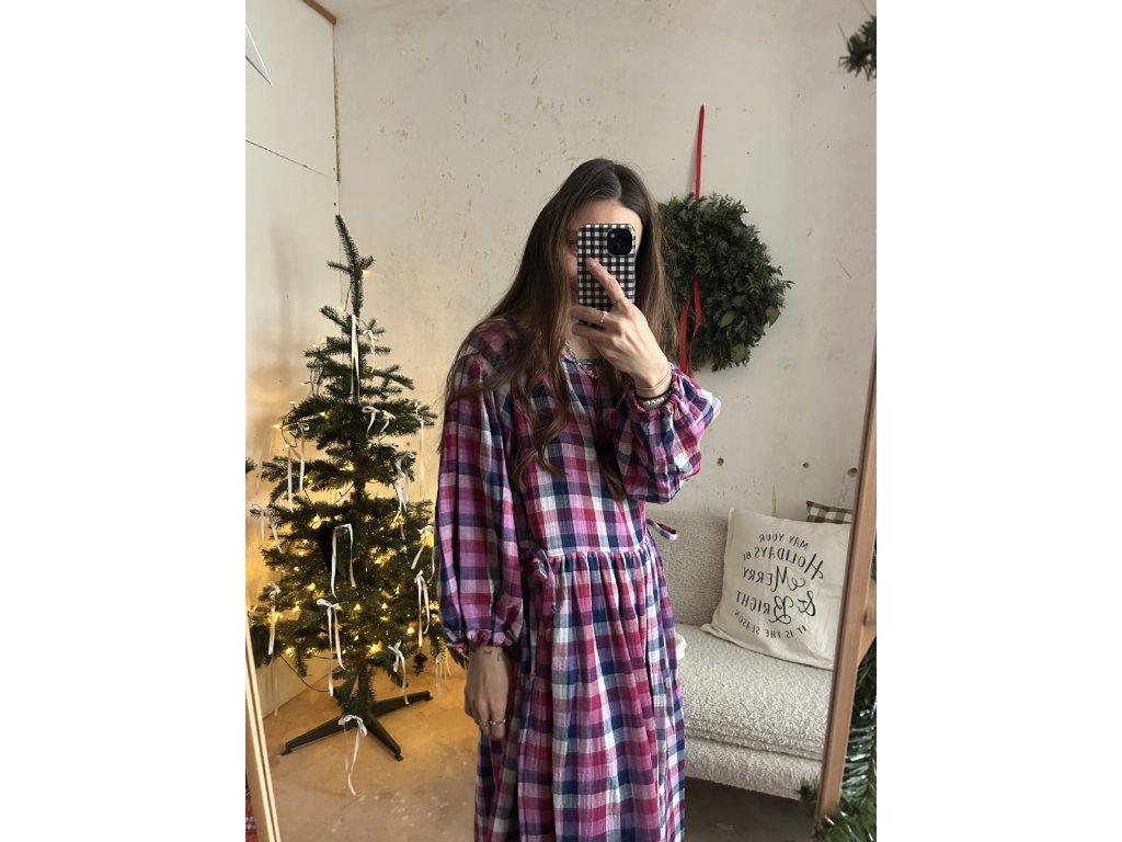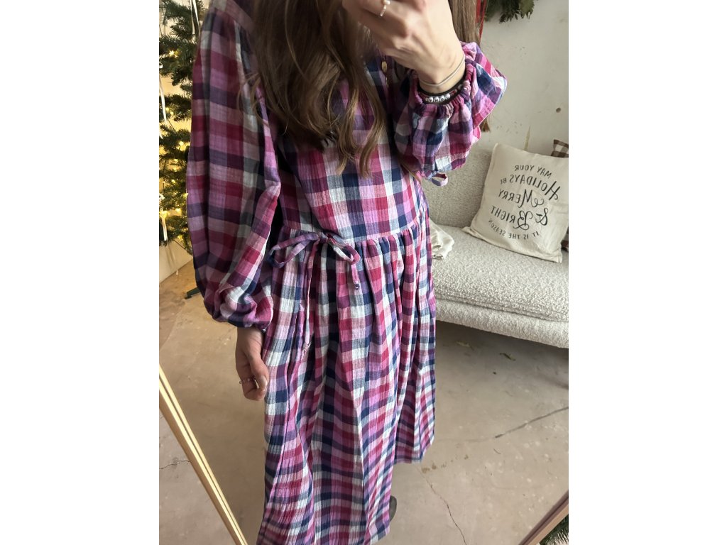 Šaty s balonovými rukávy ušité z bavlněného mušelínu. midi/maxi délka, sukně s kapsami a klasický top. Šaty jsou ozvláštněné provázky v pase, které si můžete zavázat dle libosti. Zavázání krásně zvýrazní pas.
