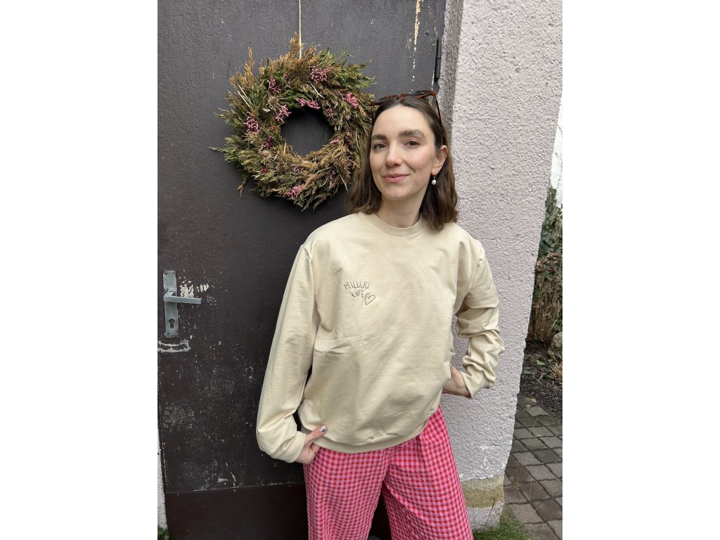 Béžová mikina MILUJU KAFE