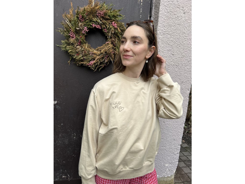 Oversized bavlněná mikina s výšivkou MILUJU KAFE.