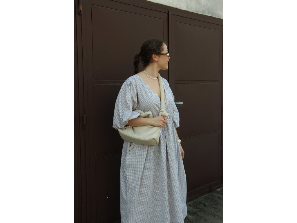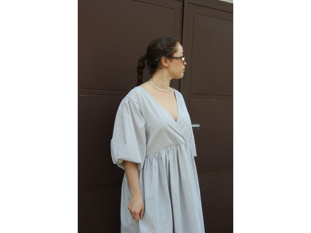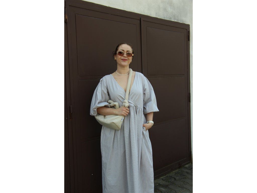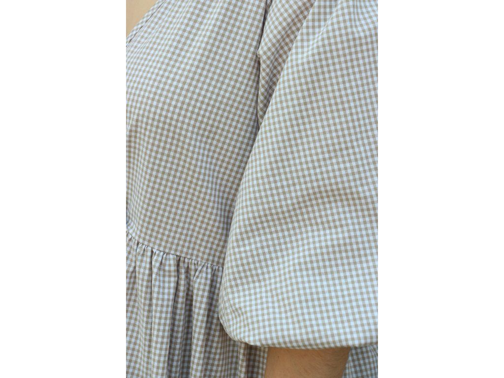 Béžové kostkované křížené šaty
