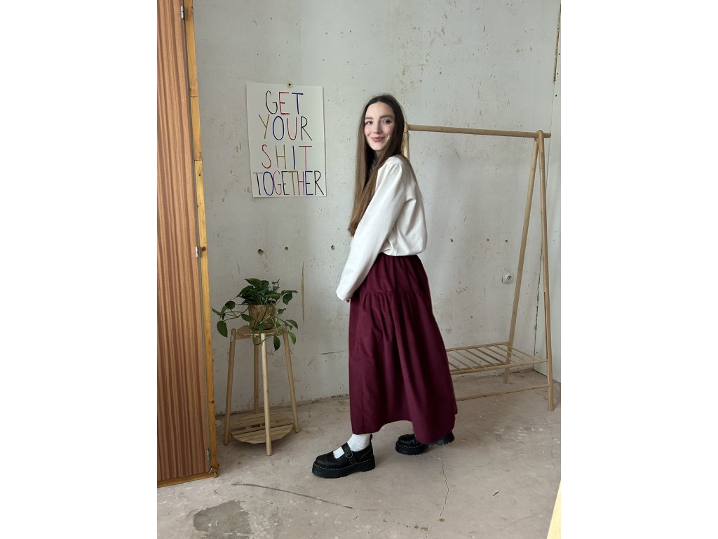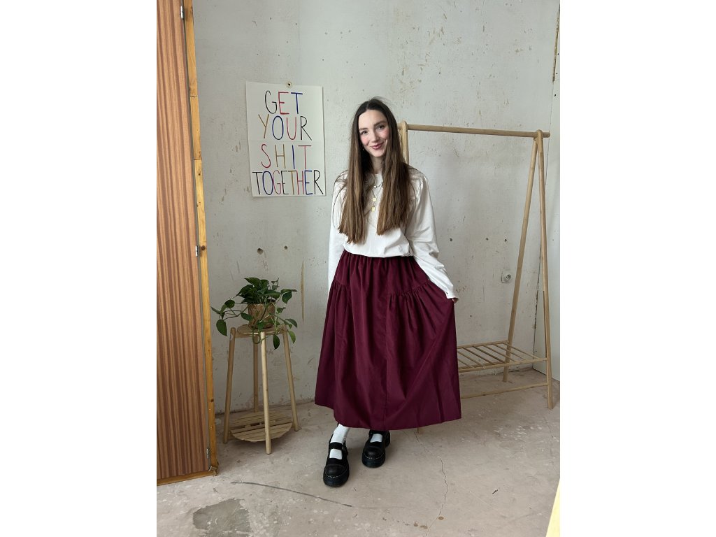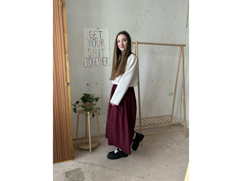 Sukně s bočním řasením. Sukně nemá kapsy.