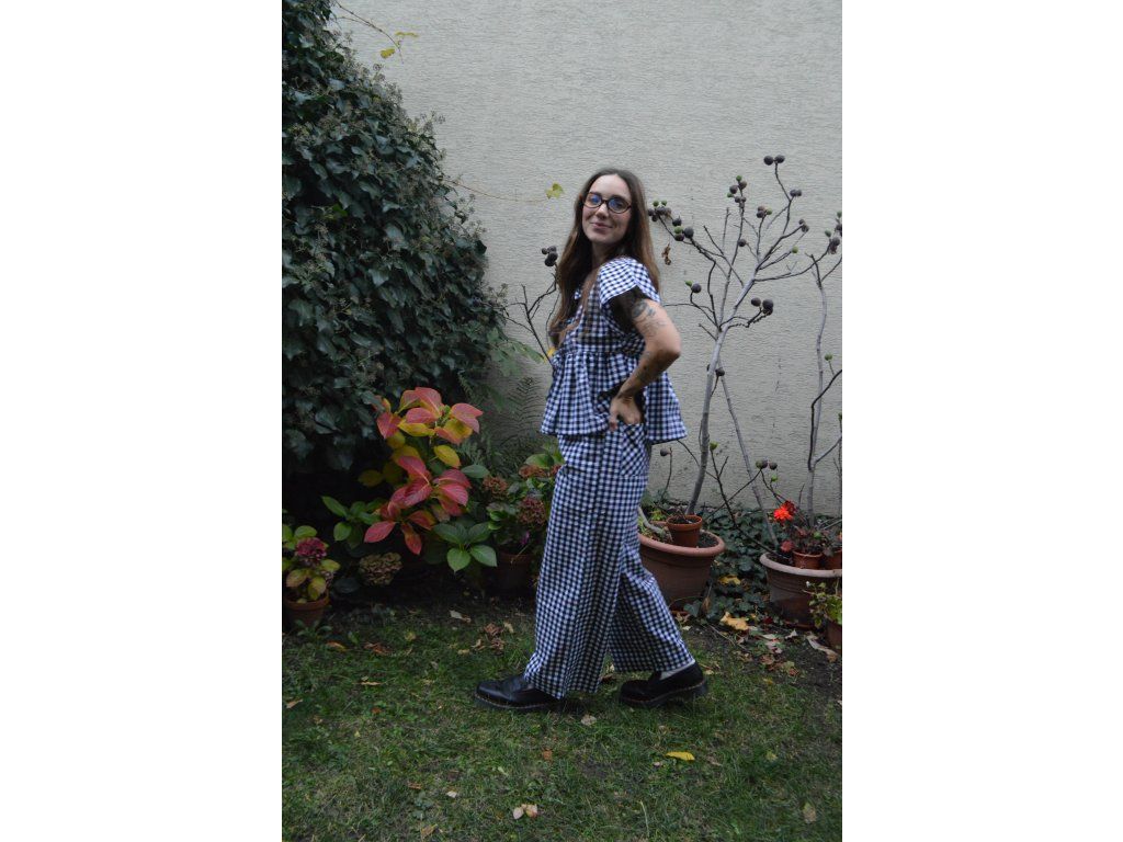 Větší halenka je v místě řasení široká 112cm a je dlouhá 56cm.