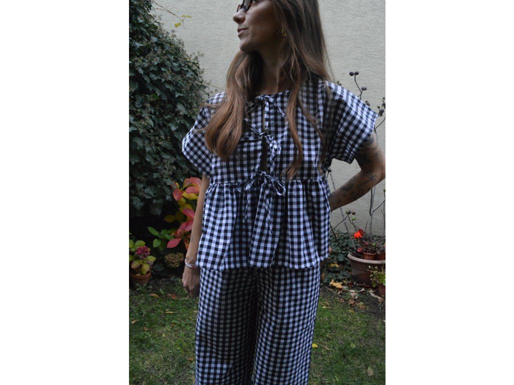 Halenka ušitá z bavlny s volánkem a krátkým rukávem. Mašličky pro oživení, díky kterým i nakojíte.