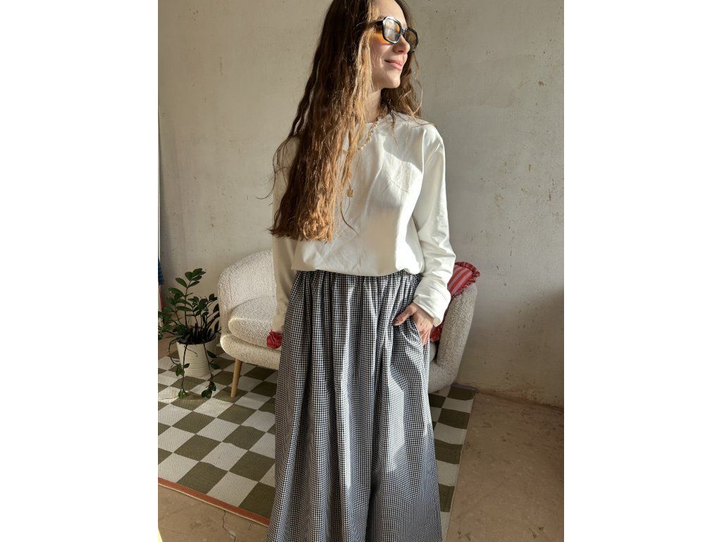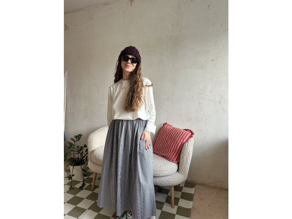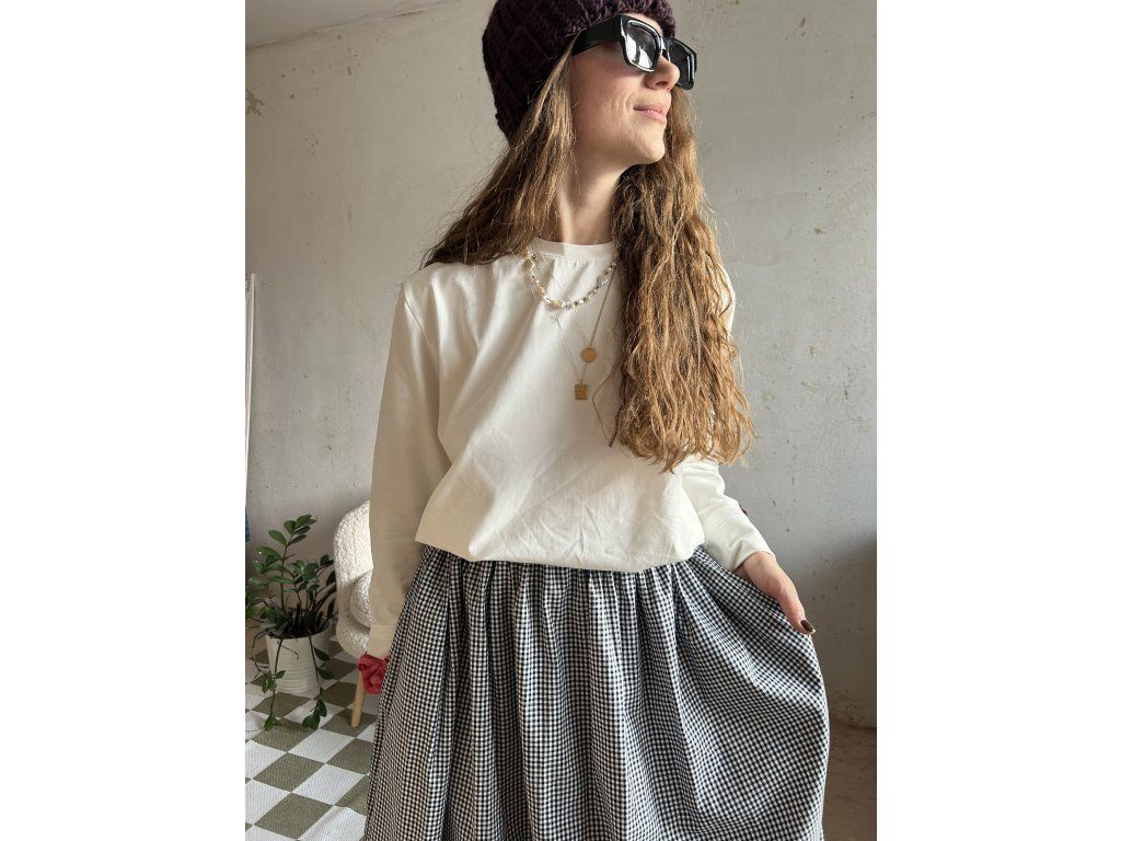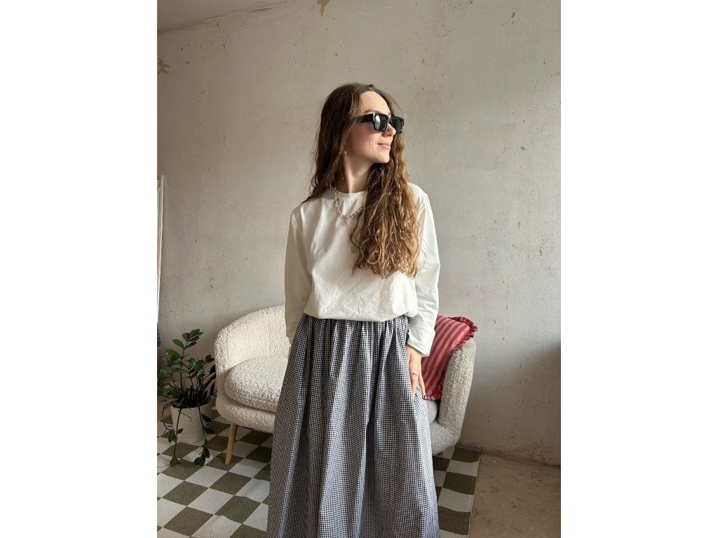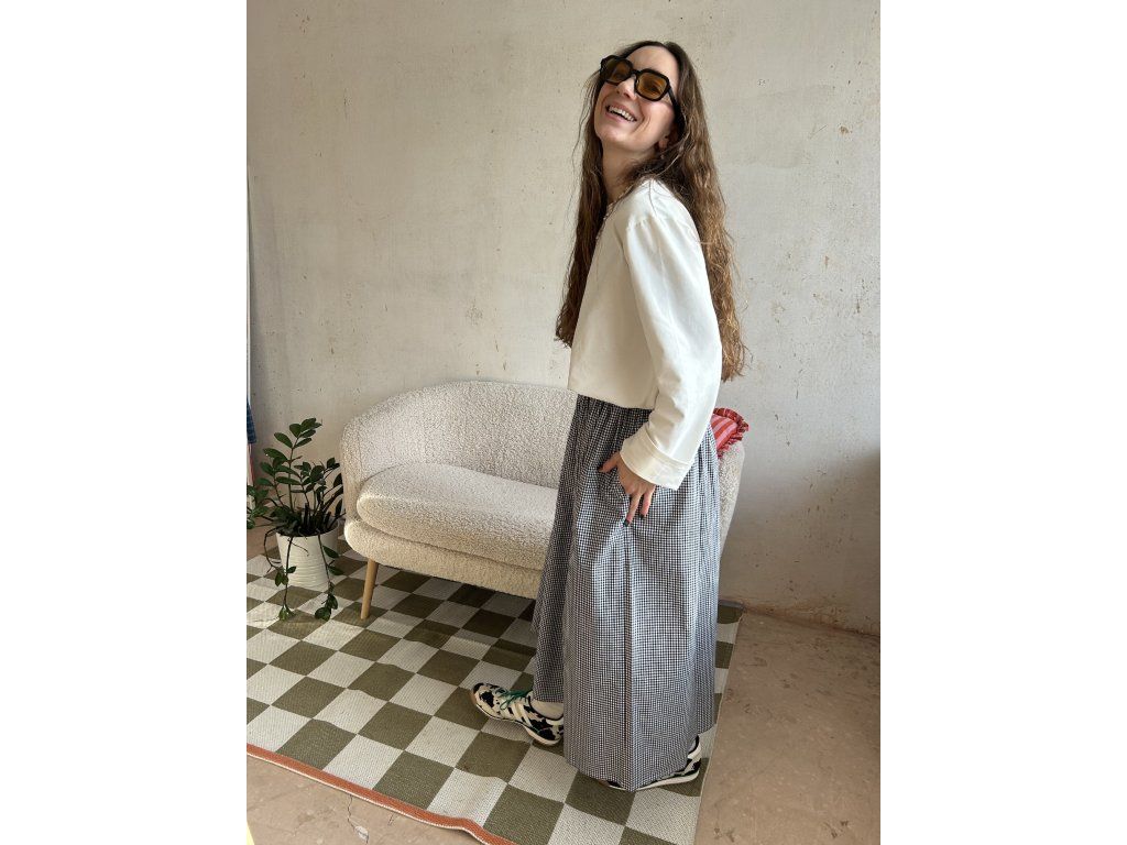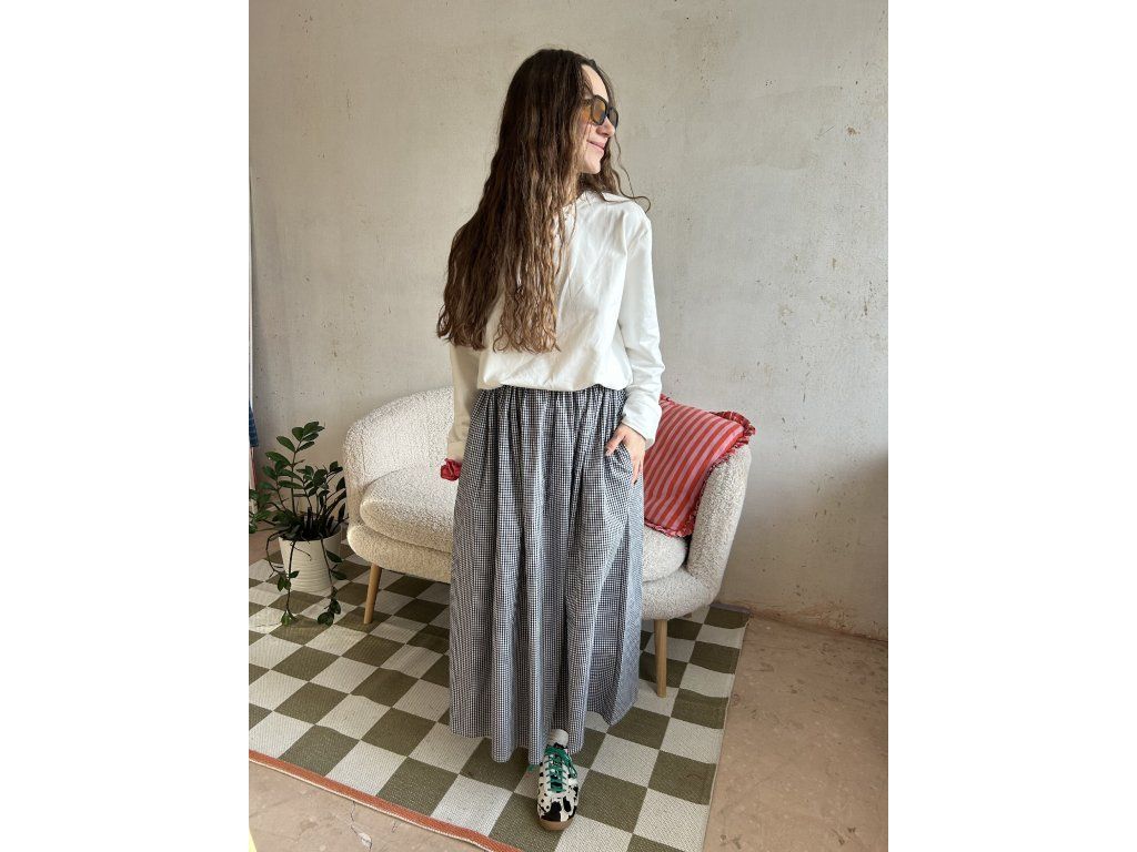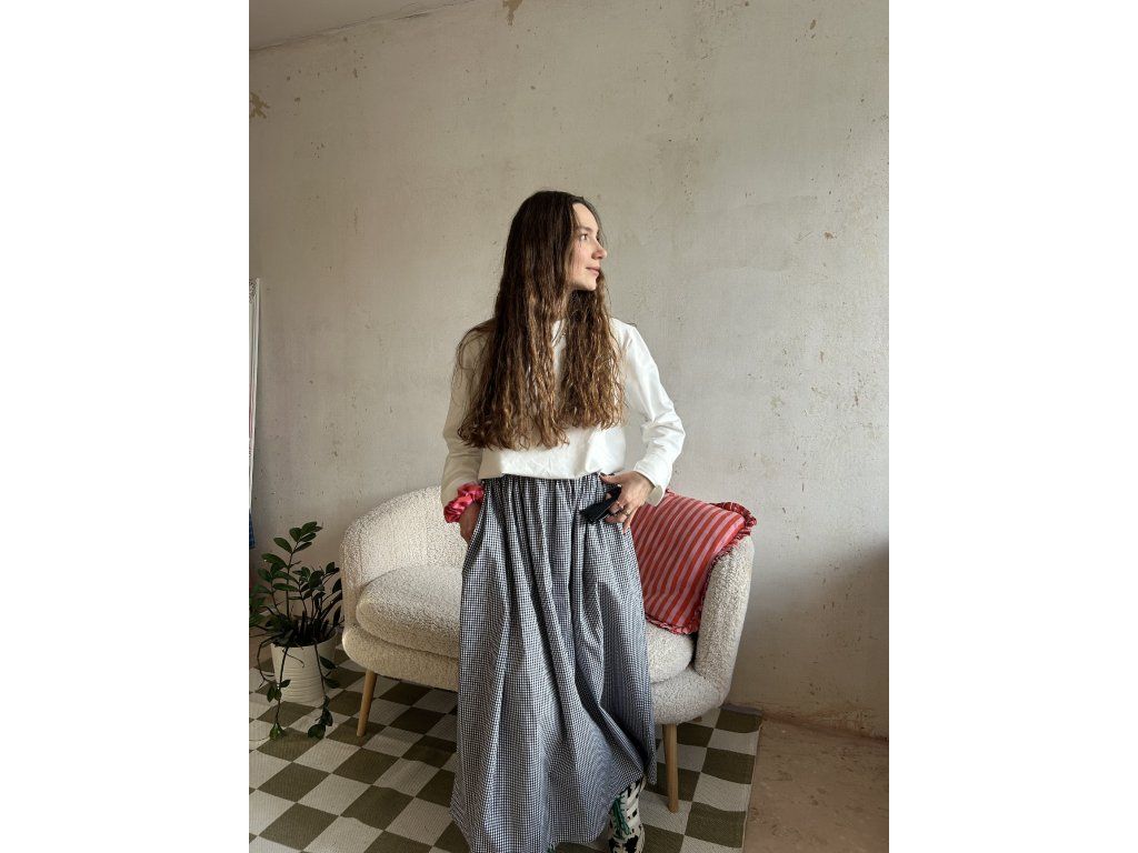 Sukně z bavlněného popelínu, nařasený objemný střih, kapsy po stranách.