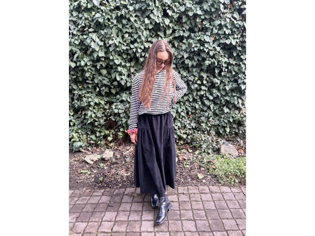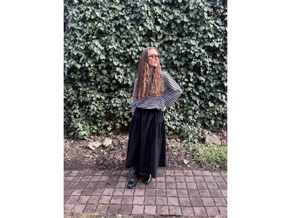 Sukně s bočním řasením. Sukně nemá kapsy.