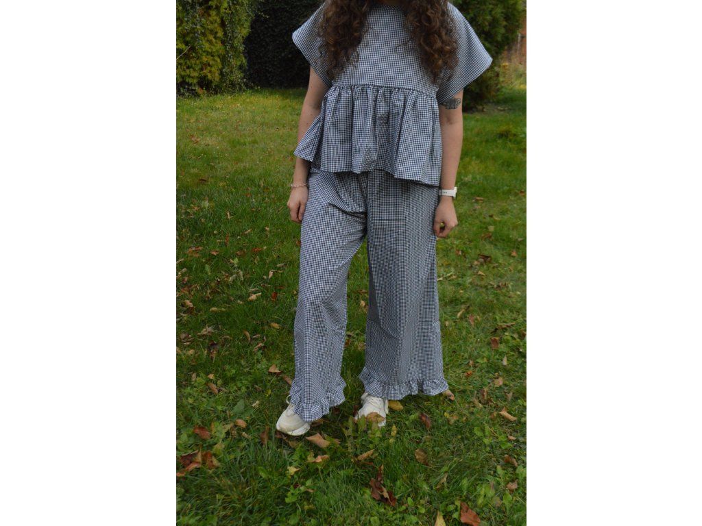 Kostkované kalhoty na gumu. Klínové kapsy a volný pohodlný střih.