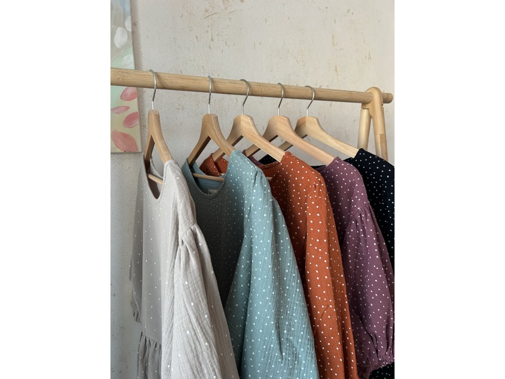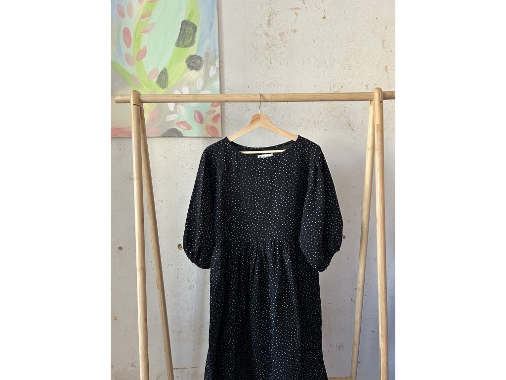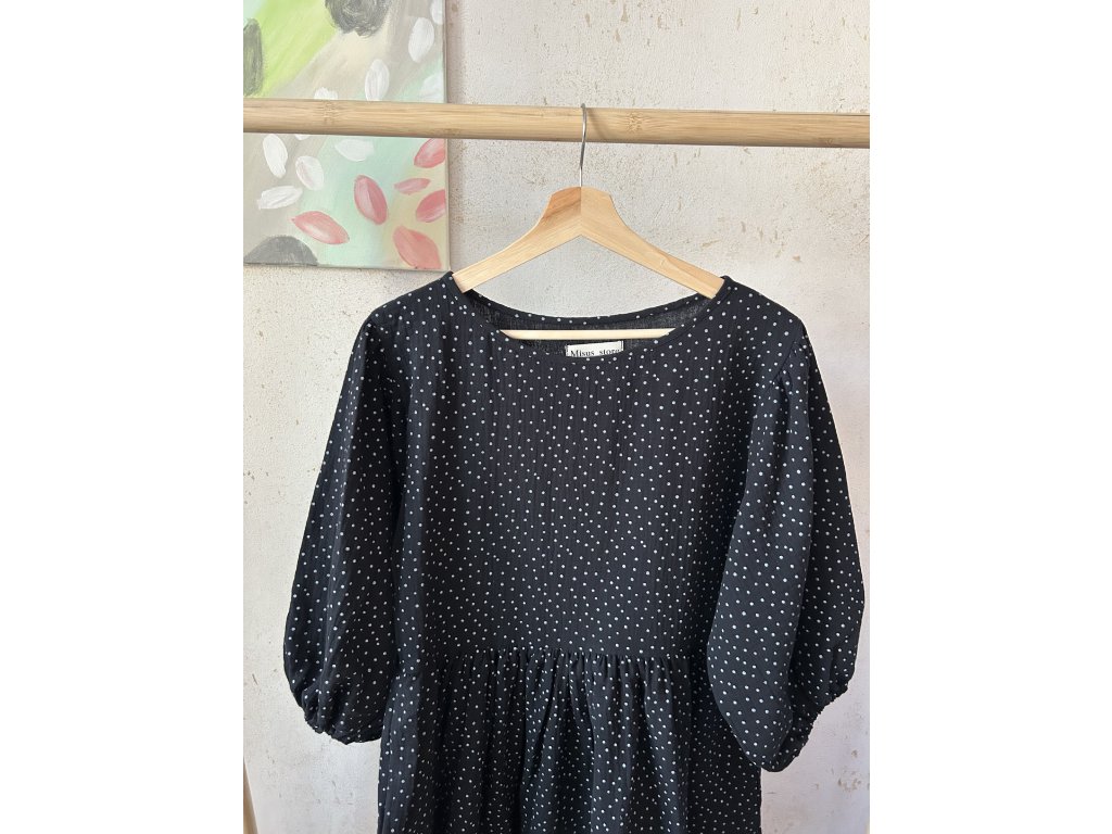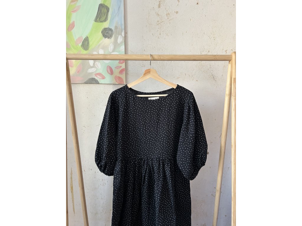 Šaty s balonovými rukávy ušité z bavlněného mušelínu. midi/maxi délka, kratší rukáv, sukně s kapsami a klasický top.