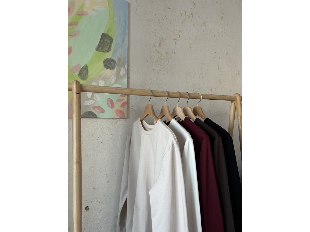 Minimalistické tričko z bavlněného úpletu na každý den. Dlouhý rukáv, který krásně funguje i ohrnutý, mírně spadlá linie ramen, oversized střih.