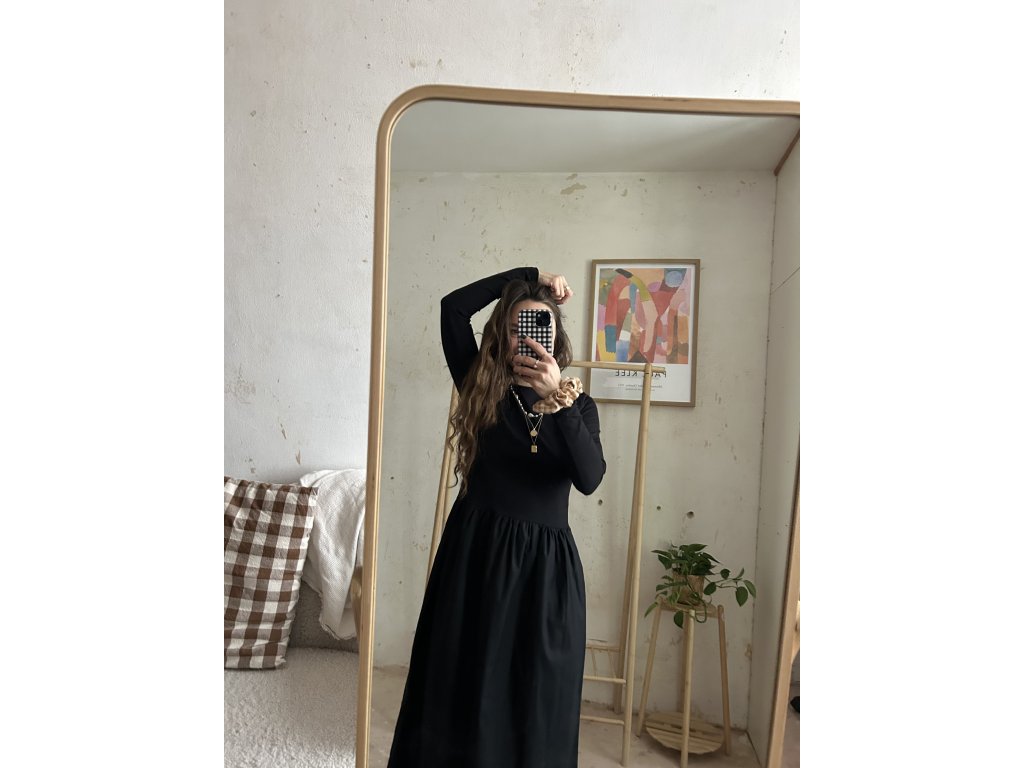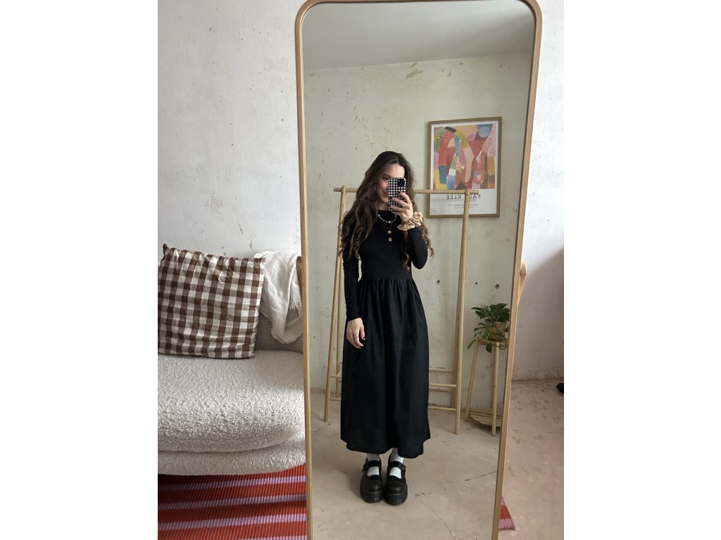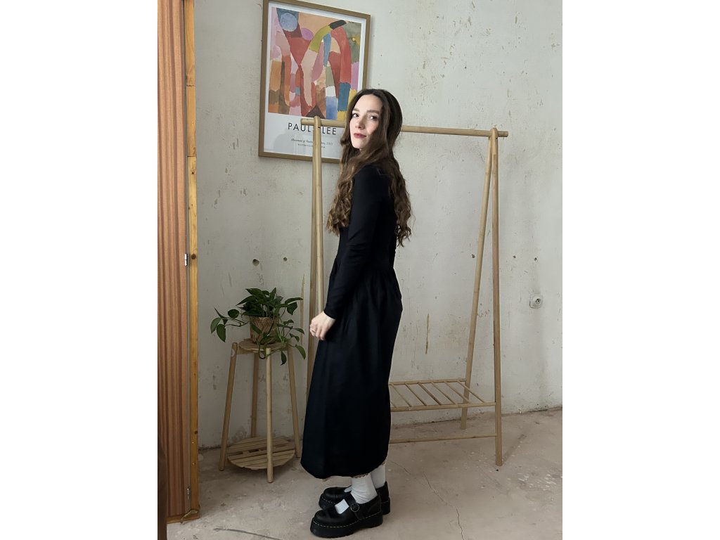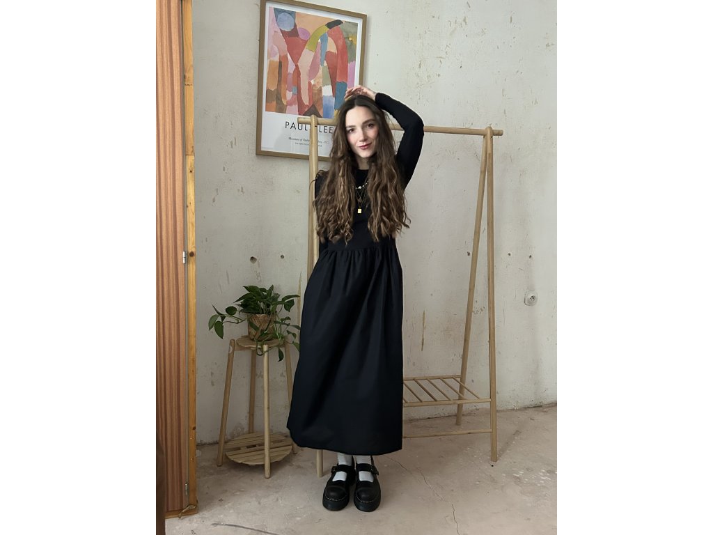 Šaty ušité z bavlněného úpletu (97%bavlna, 3%elastan), doplněné o popelínovou bavlněnou sukni. Upnutý top s dlouhými rukávy, který udělá krásnou siluetu. Dlouhá a maličko řasená sukně s kapsami. Informace k velikostem najdete níže.