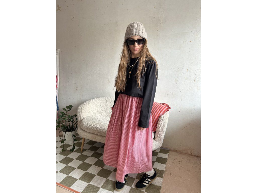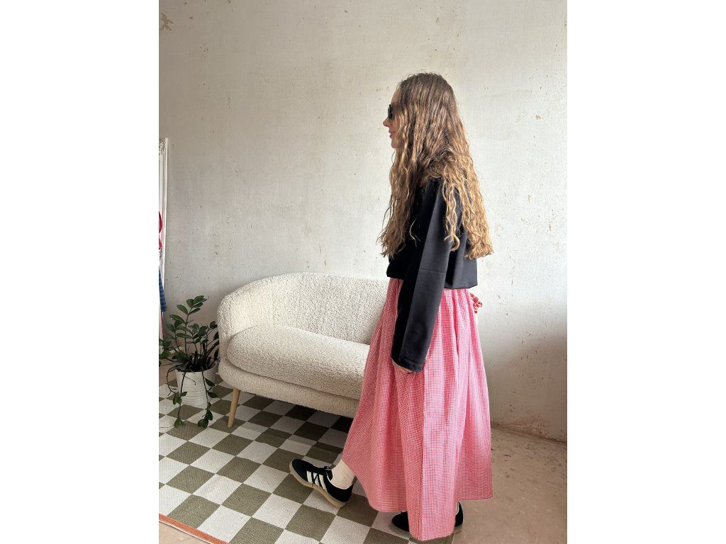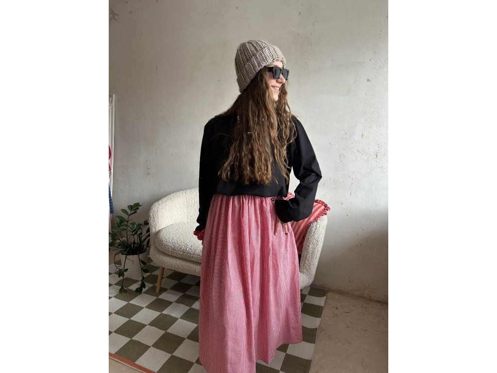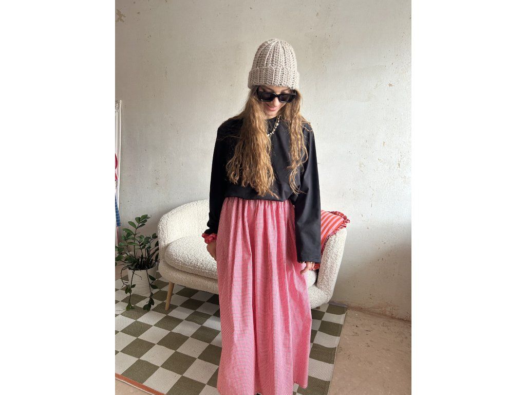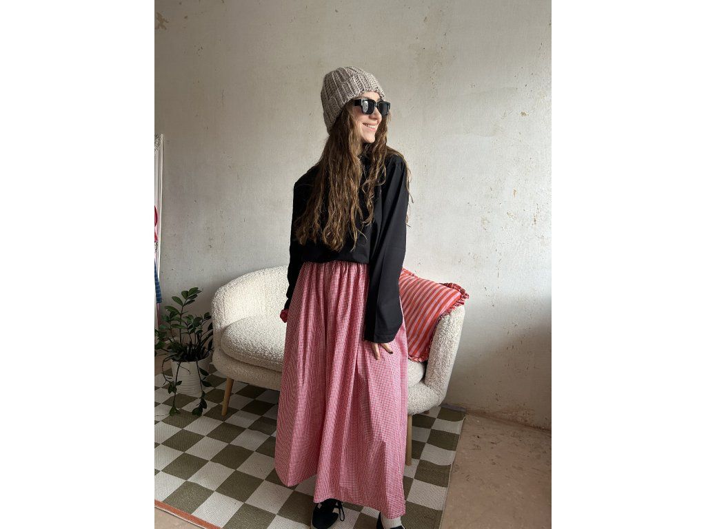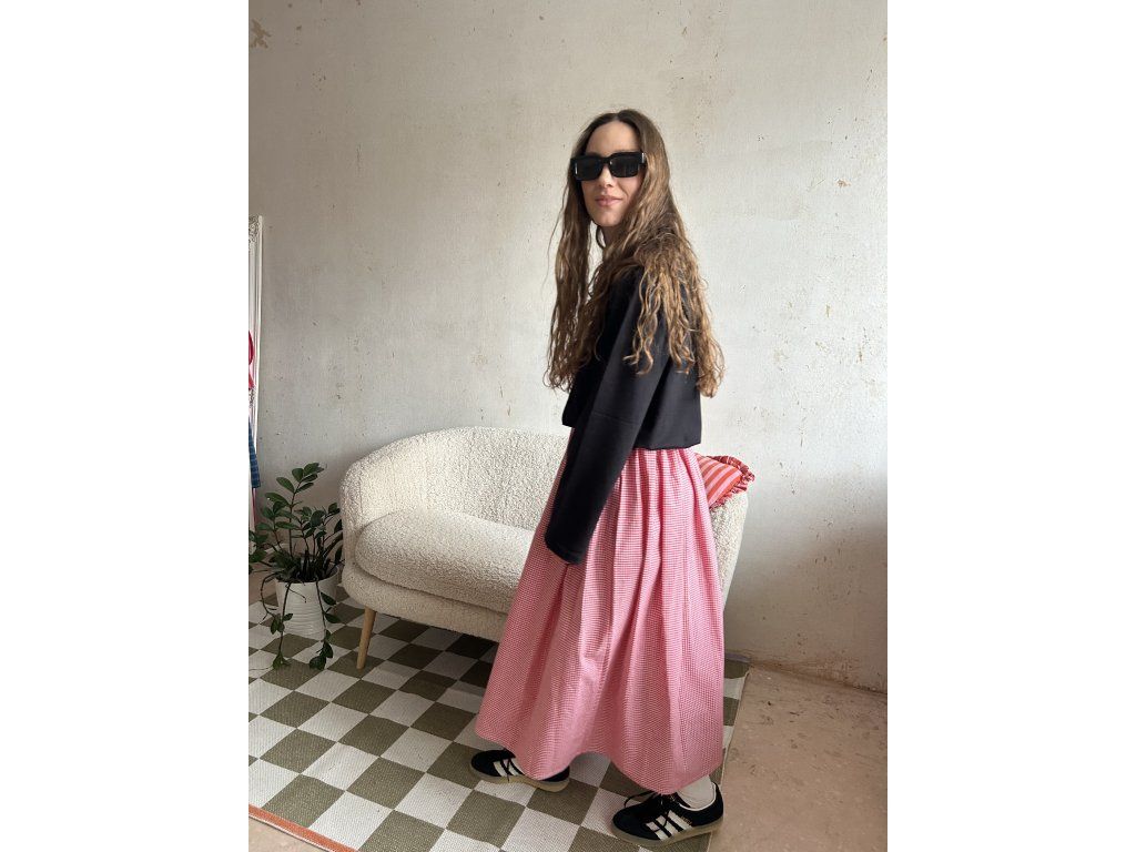Sukně z bavlněného popelínu, nařasený objemný střih, kapsy po stranách.