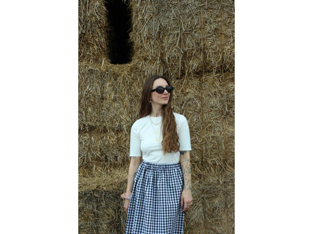 Minimalistické tričko z bavlněného úpletu na každý den. Prodloužený krátký rukáv, delší střih, který krásně obepne tělo a dělá krásnou postavu, hodí se ke každému outfitu.
