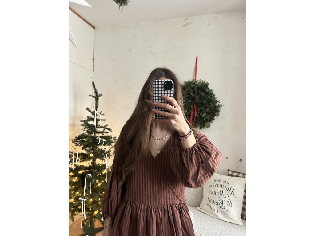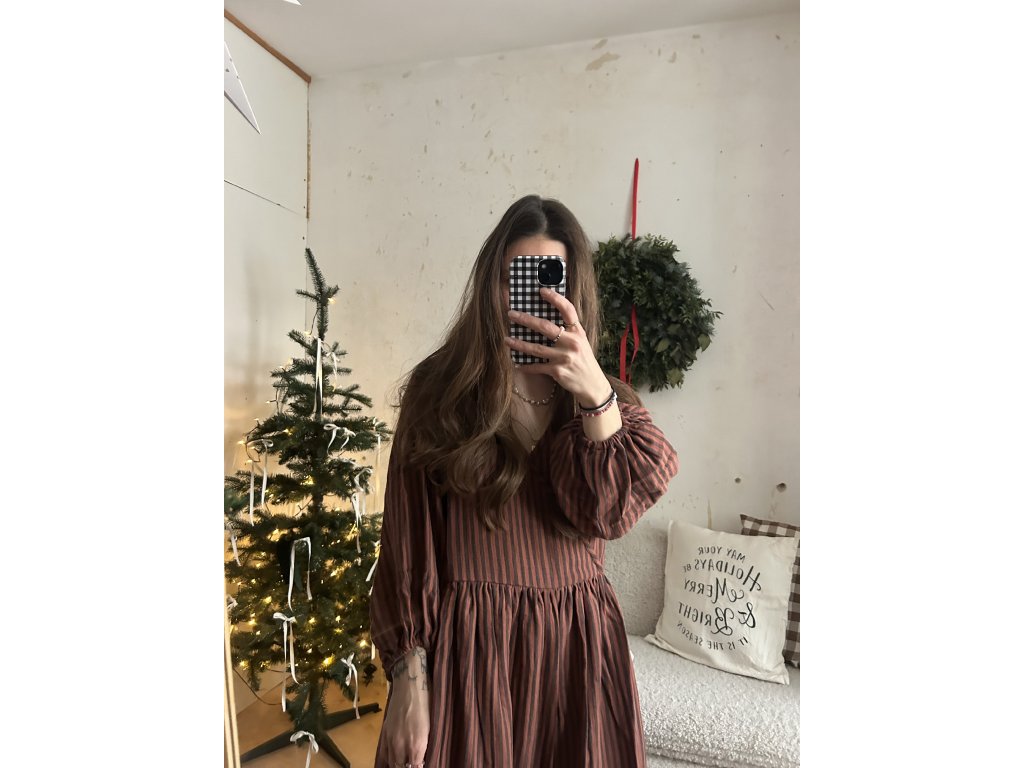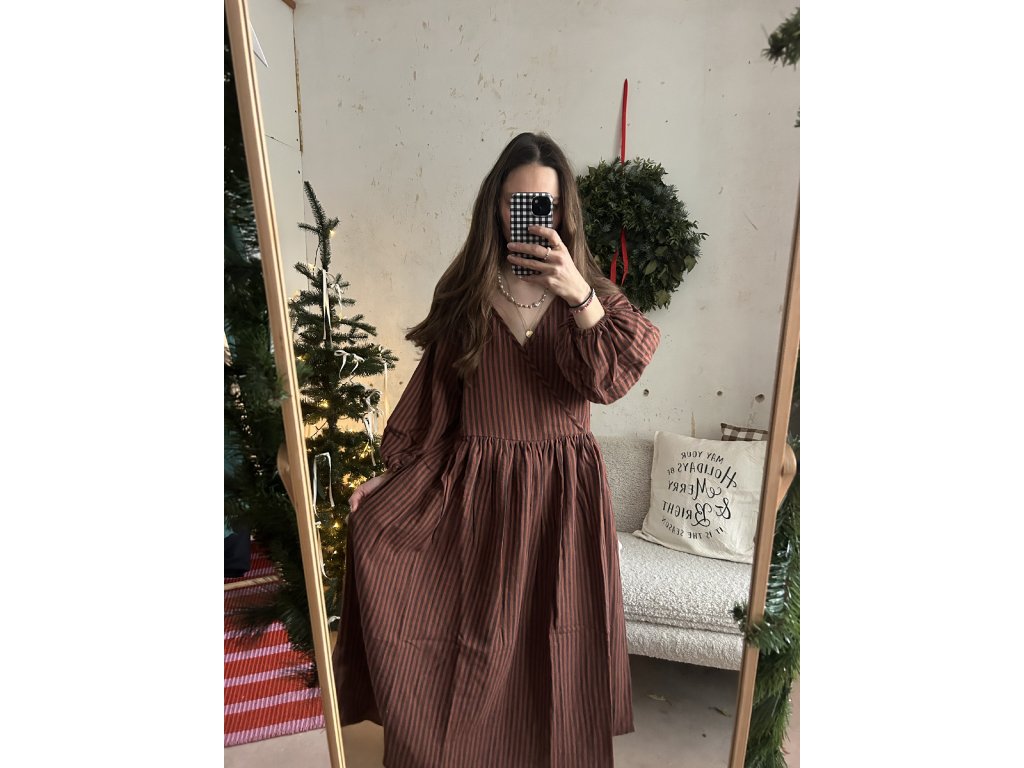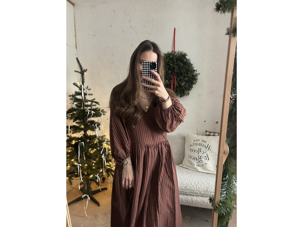 Hnědé proužkované mušelínové šaty