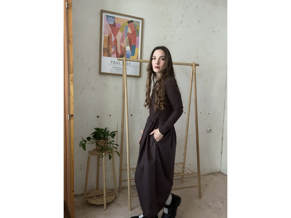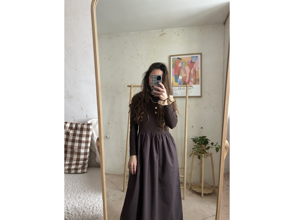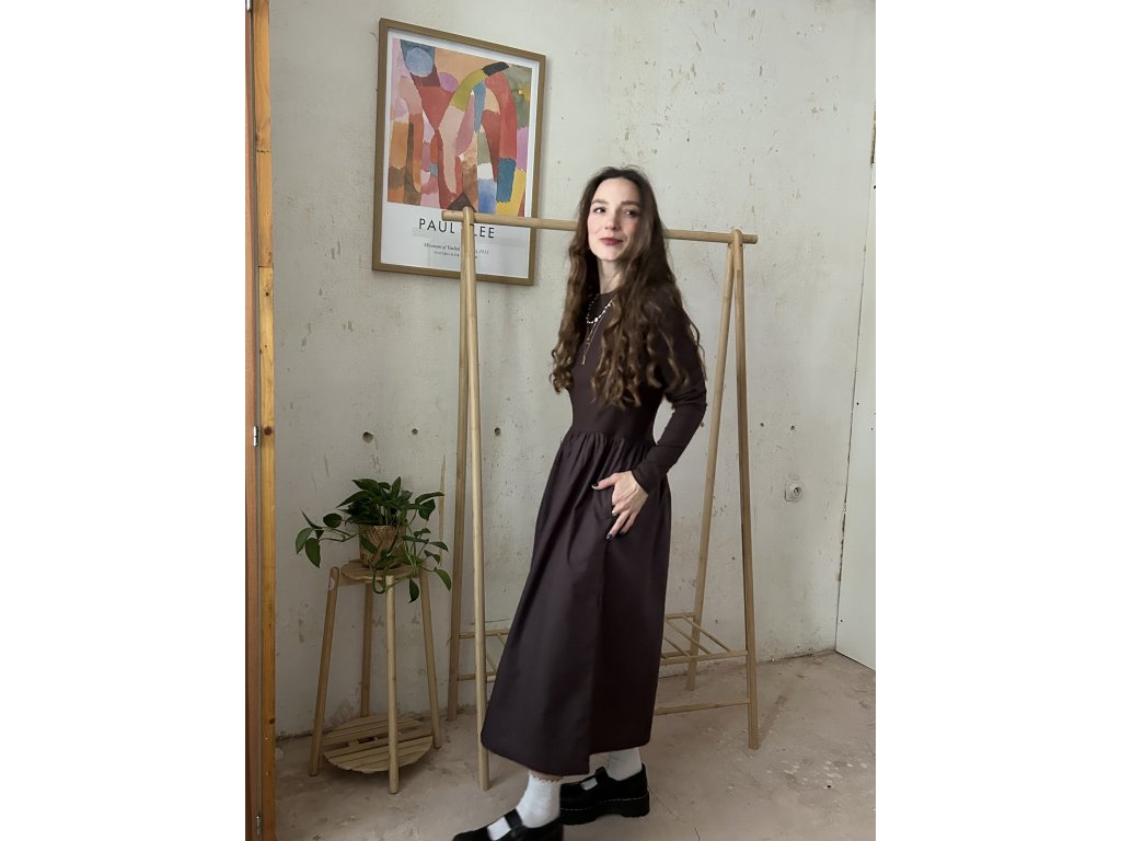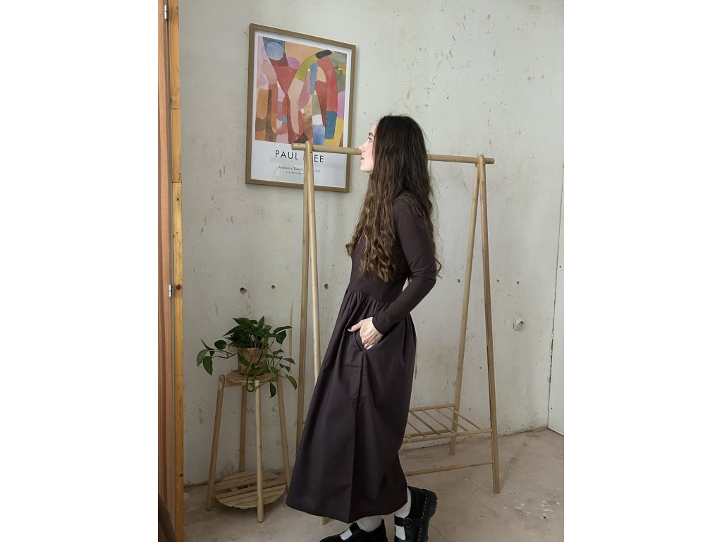 Šaty ušité z bavlněného úpletu (97%bavlna, 3%elastan), doplněné o popelínovou bavlněnou sukni. Upnutý top s dlouhými rukávy, který udělá krásnou siluetu. Dlouhá a maličko řasená sukně s kapsami. Informace k velikostem najdete níže.