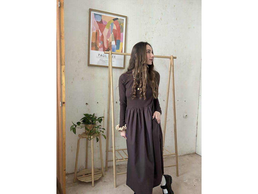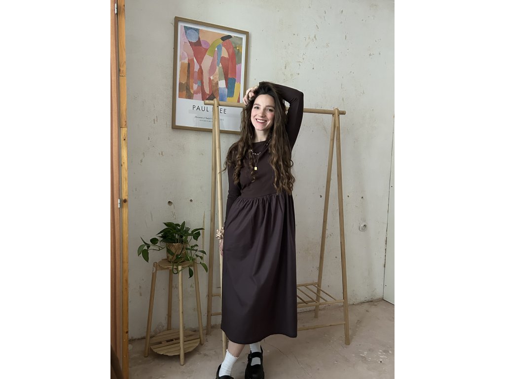 Hnědé upnuté šaty z úpletu