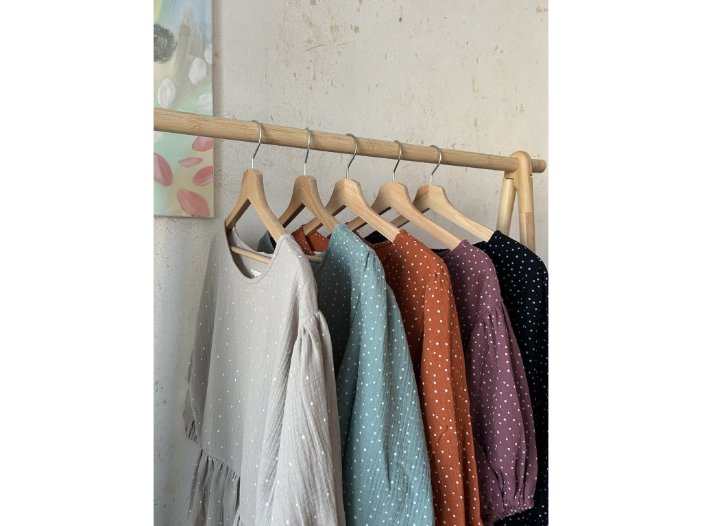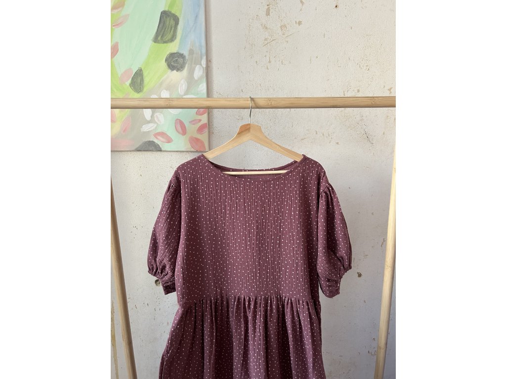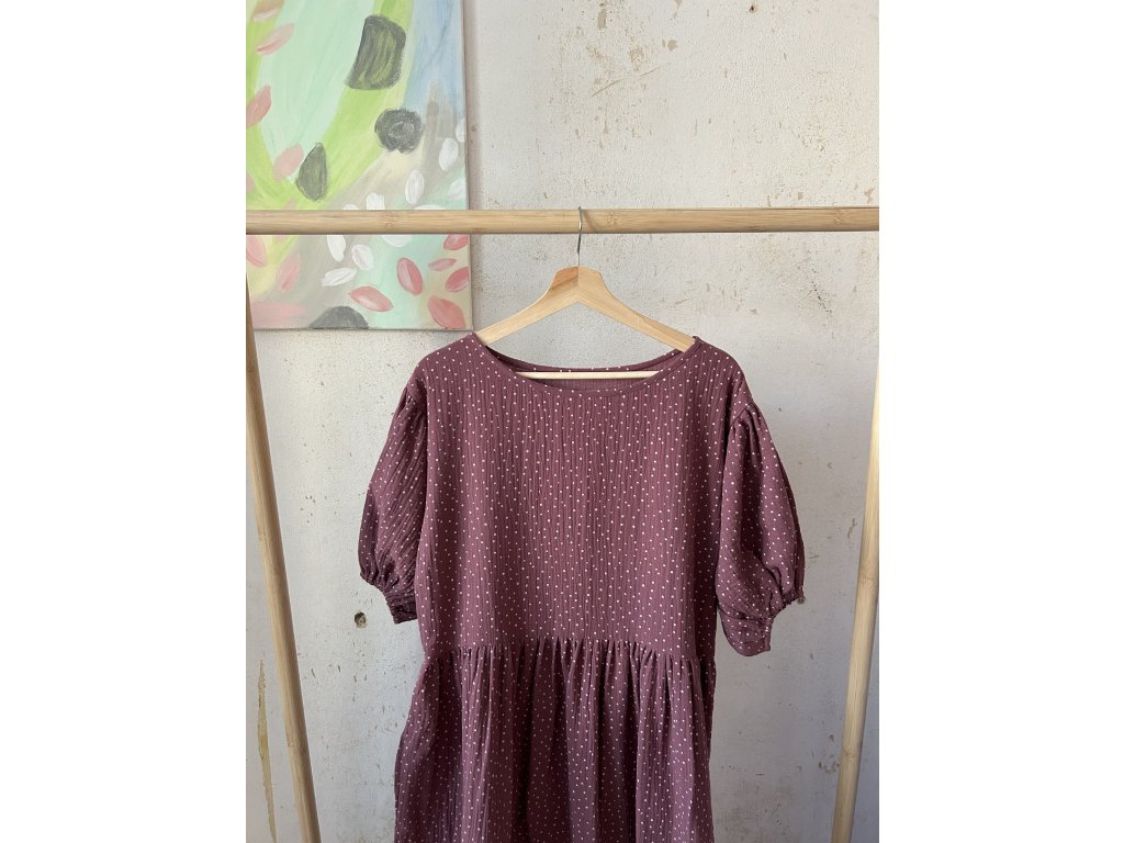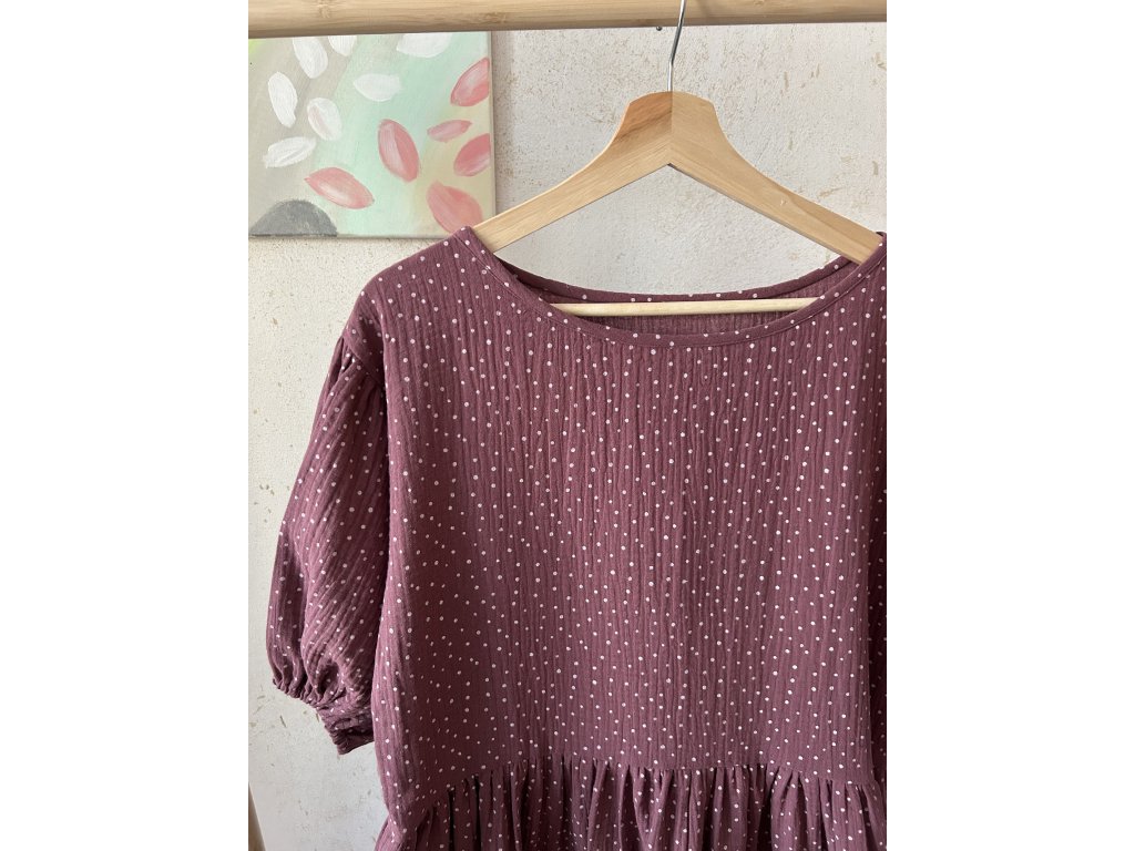 Mauve puntíkaté šaty z mušelínu