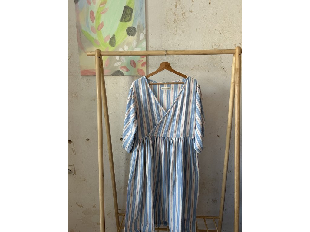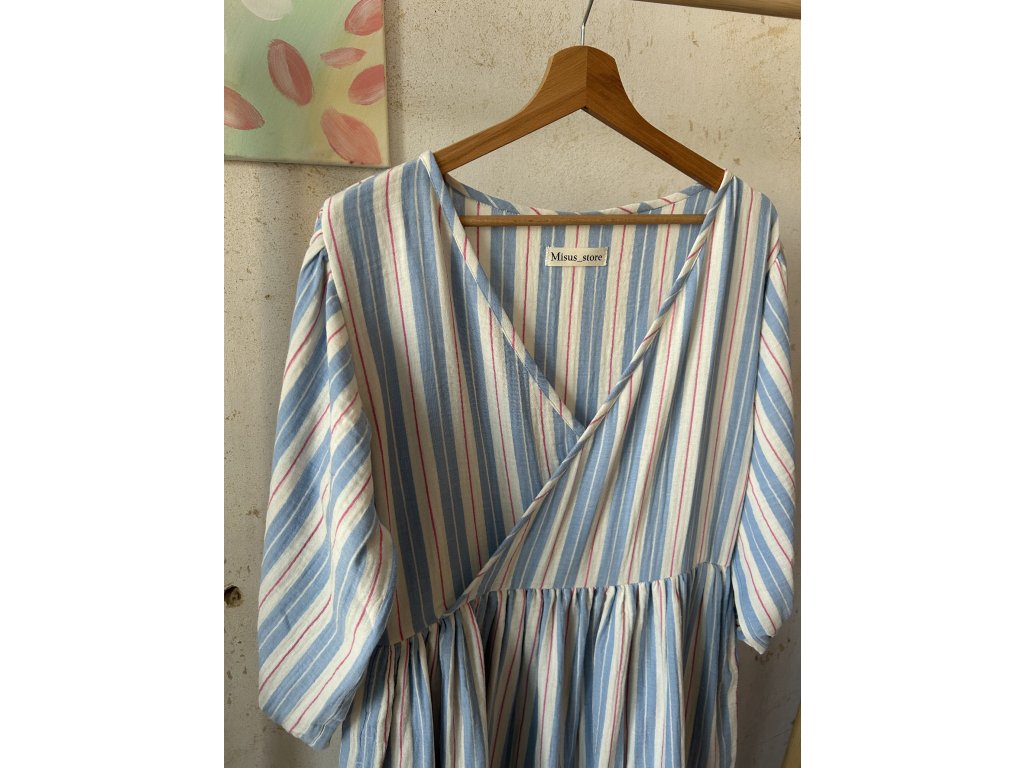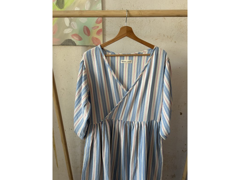 Šaty s balonovými rukávy ušité z bavlněného mušelínu. midi/maxi délka, sukně s kapsami a klasický top.