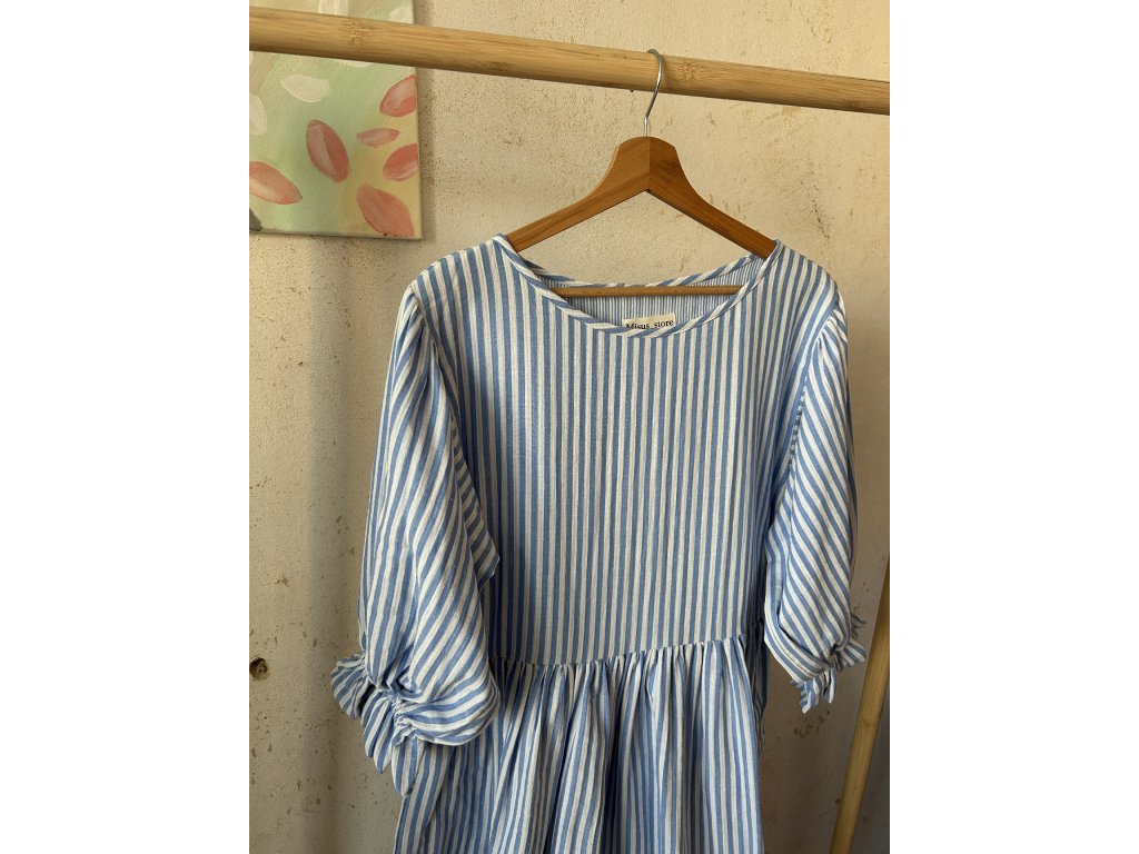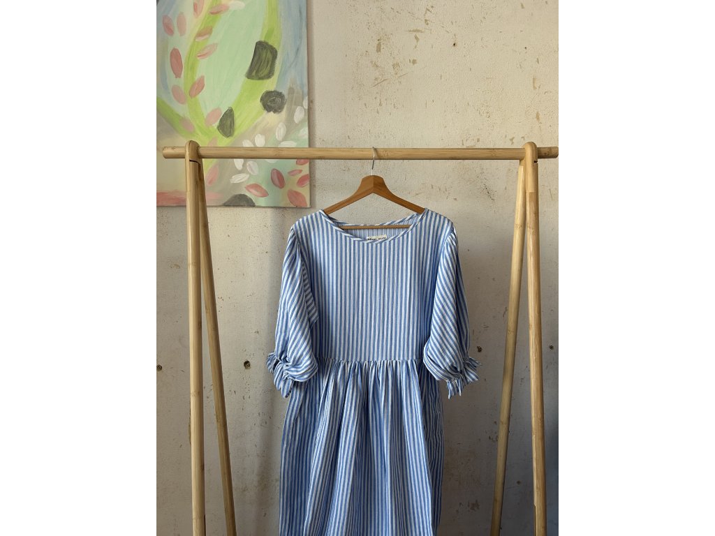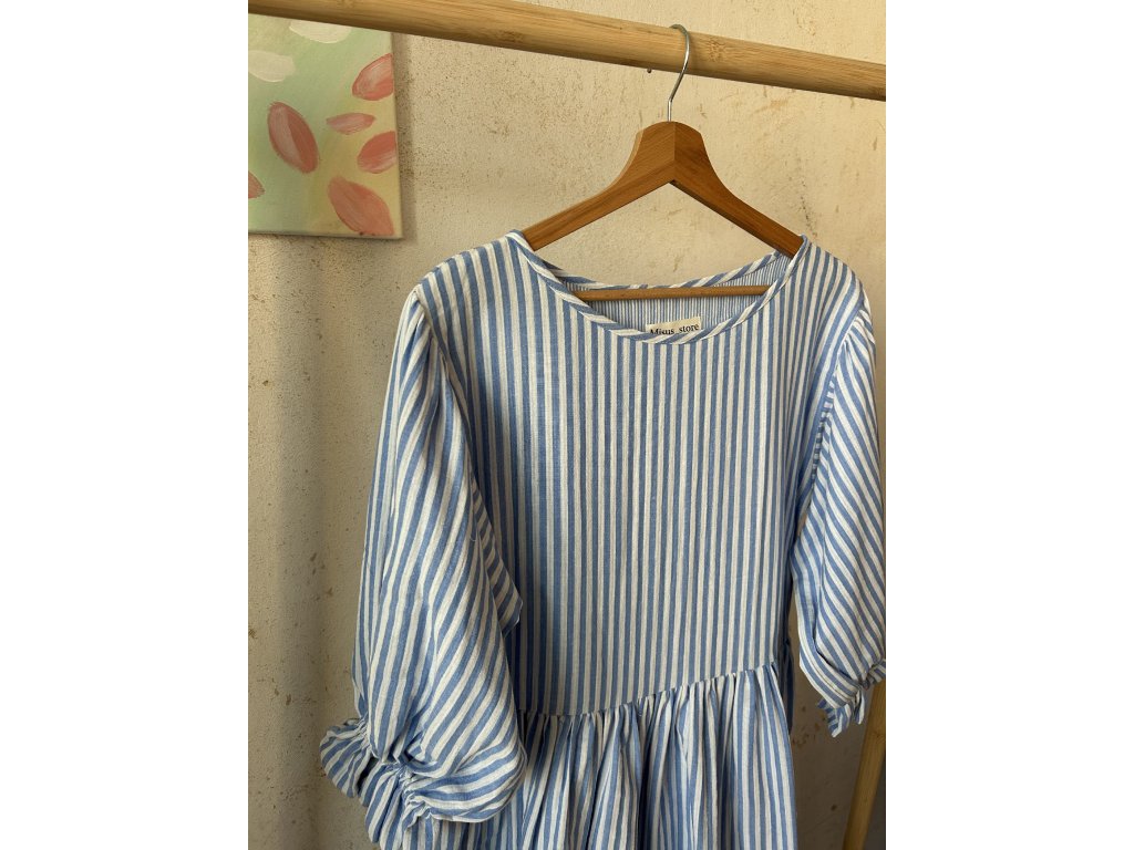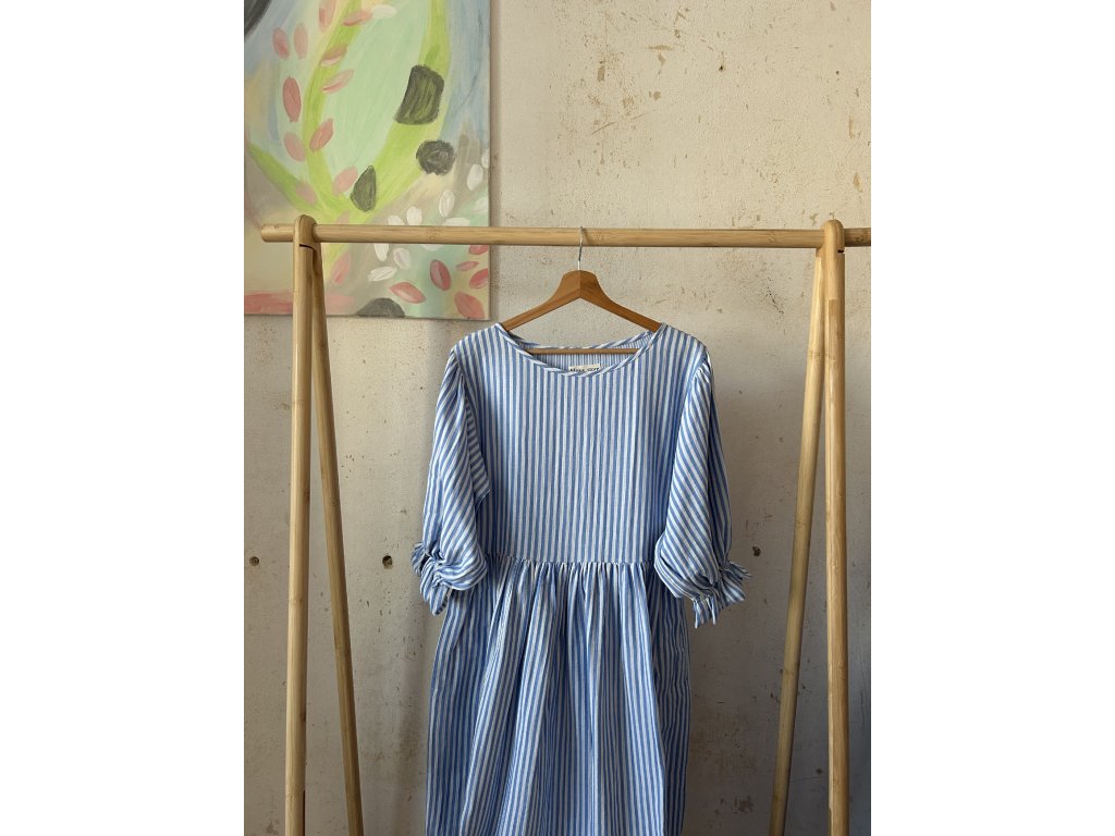 Šaty s balonovými rukávy ušité z bavlněného mušelínu. midi/maxi délka, rukáv s volánkem, sukně s kapsami a klasický top.