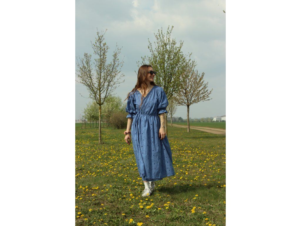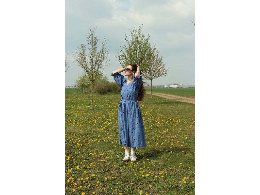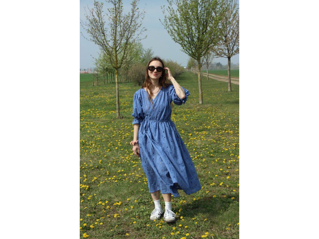 Celozavinovací střih, který si utáhnete dle vlastního těla. Jsou ušité z bavlněné madeiry s květinami. Lehoučký a vzdušný materiál ve kterém se budete i v parném počasí cítit jako byste na sobě nic neměla. Jelikož je materiál opravdu lehoučký, latka je mírně průsvitná, zároveň šaty nejsou podšité a v látce jsou dírky, doporučuji podvlékat nude cyklo šortky a nějaké tílko či crop top.