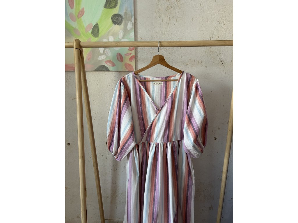 PŘEDOBJEDNÁVKA - Proužkované oranžovo fialkové šaty
