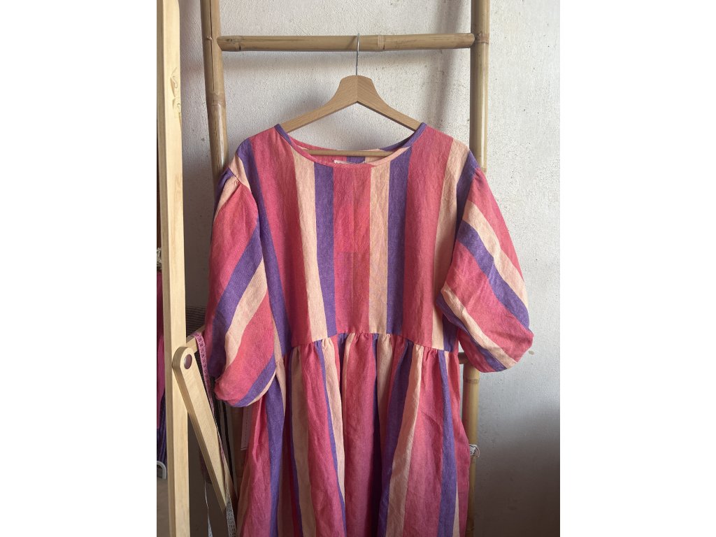Šaty s balonovými rukávy ušité z 100% lnu české výroby, midi délka s kapsami a překřížený top ve kterém pohodlně nakojíte. Kanafas má gramáž cca 180g/m2.