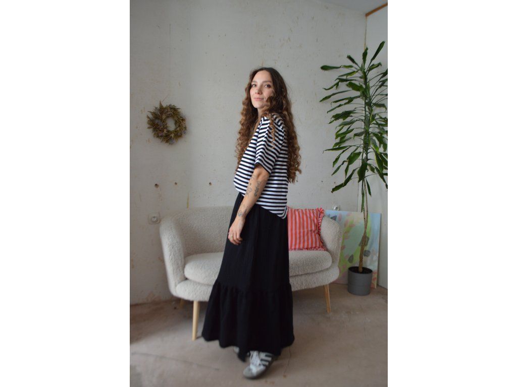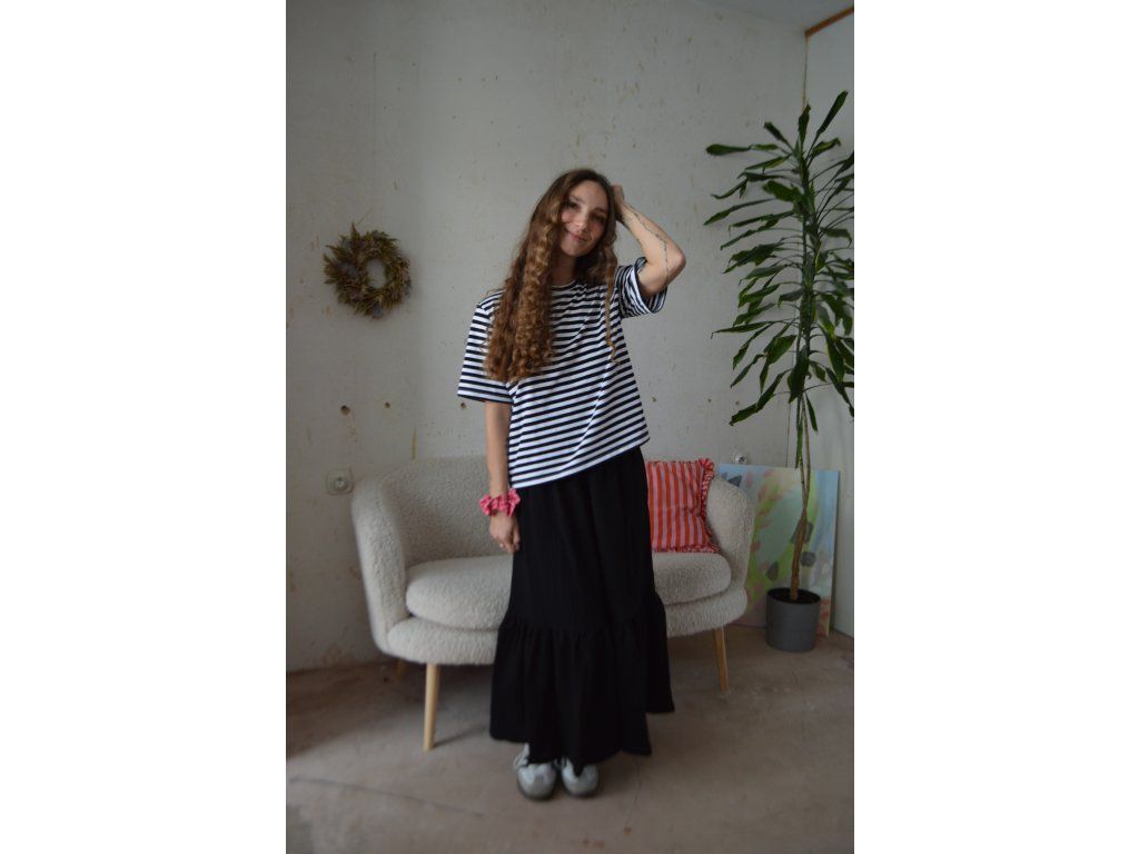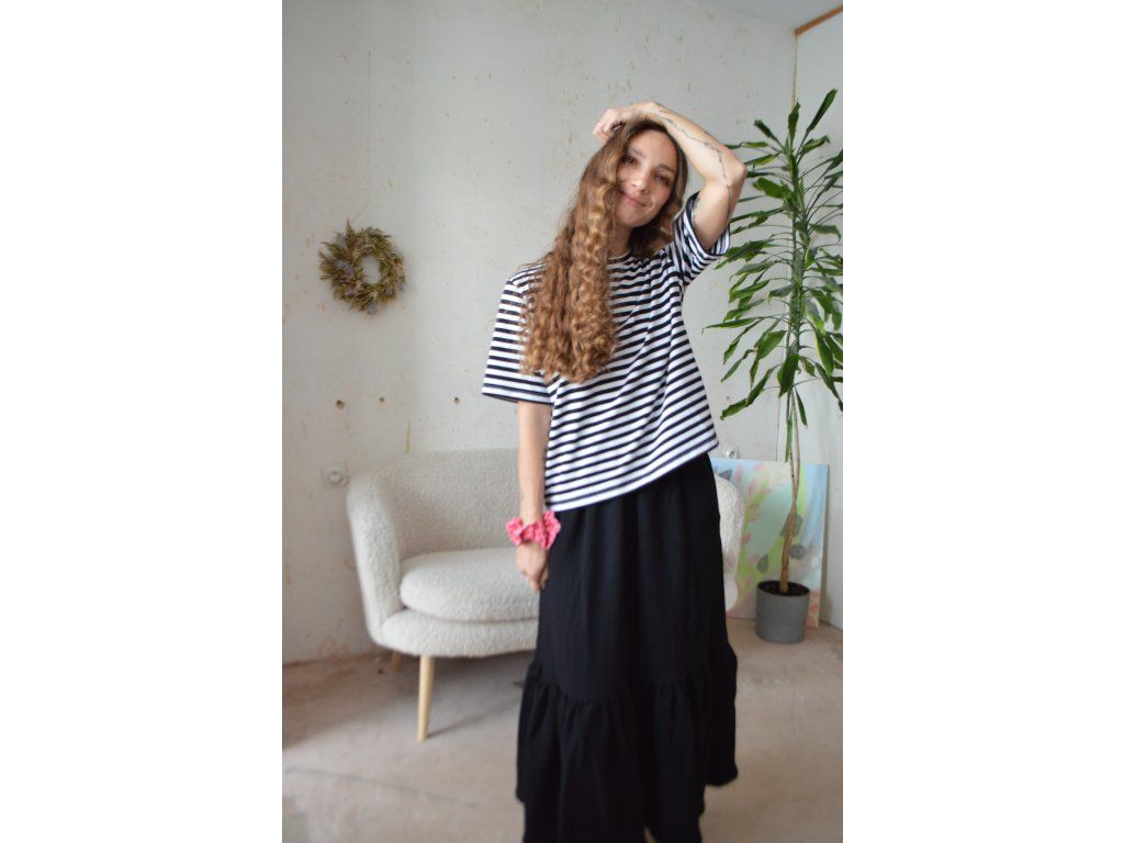 Tričko jsme ušili v jedné v jedné univerzální velikosti, menším velikostem sedne oversized, větším více na tělo.