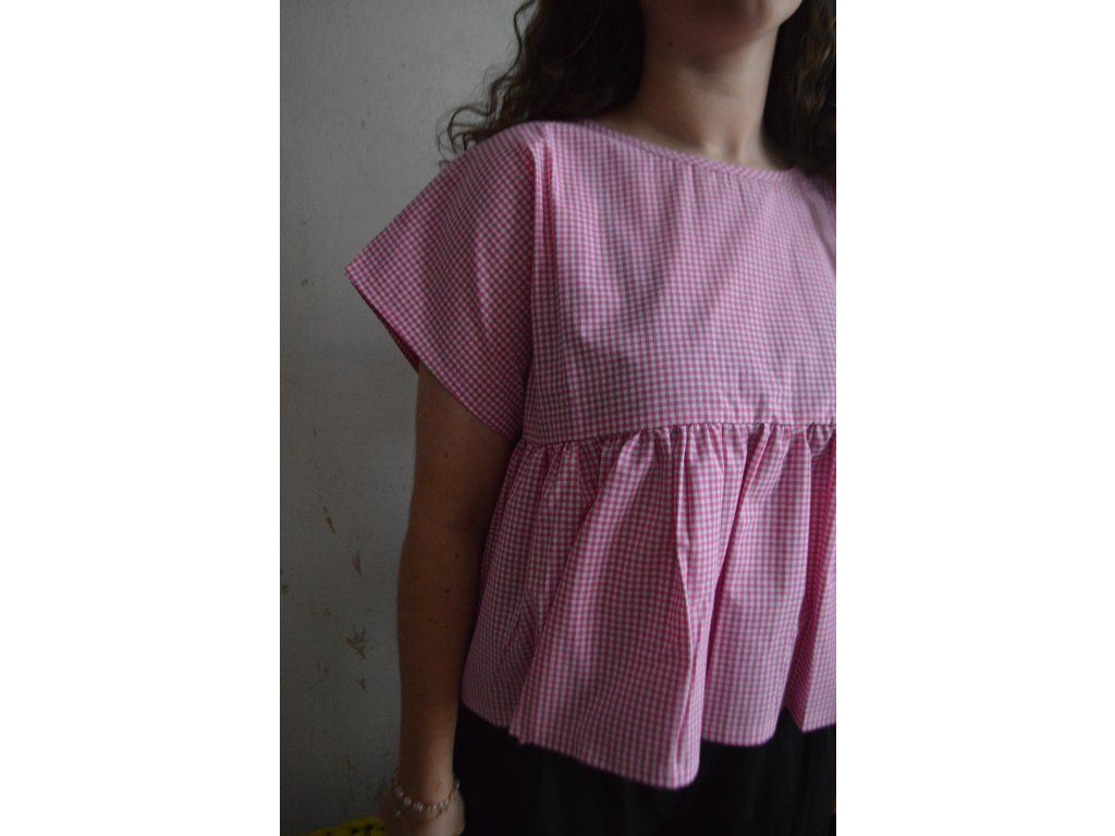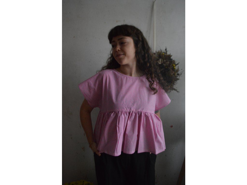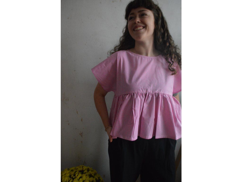 Halenka ušitá z bavlny s volánkem a krátkým rukávem.