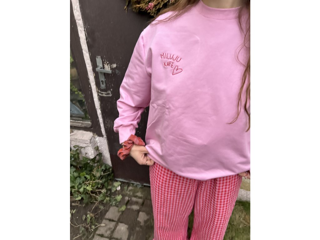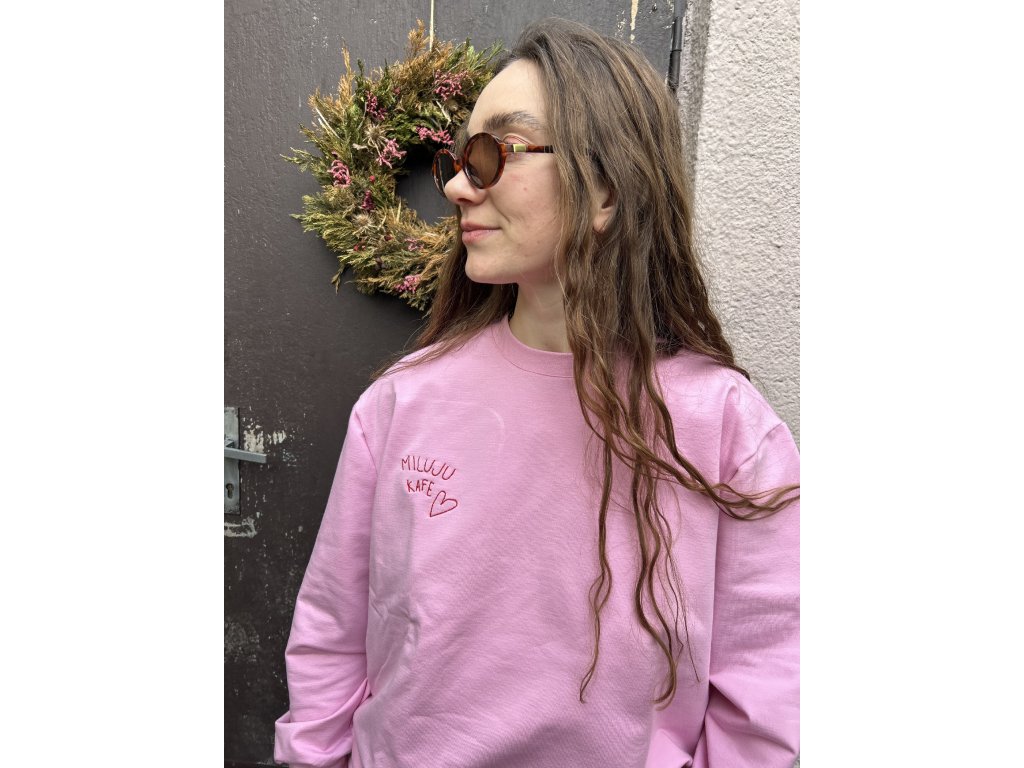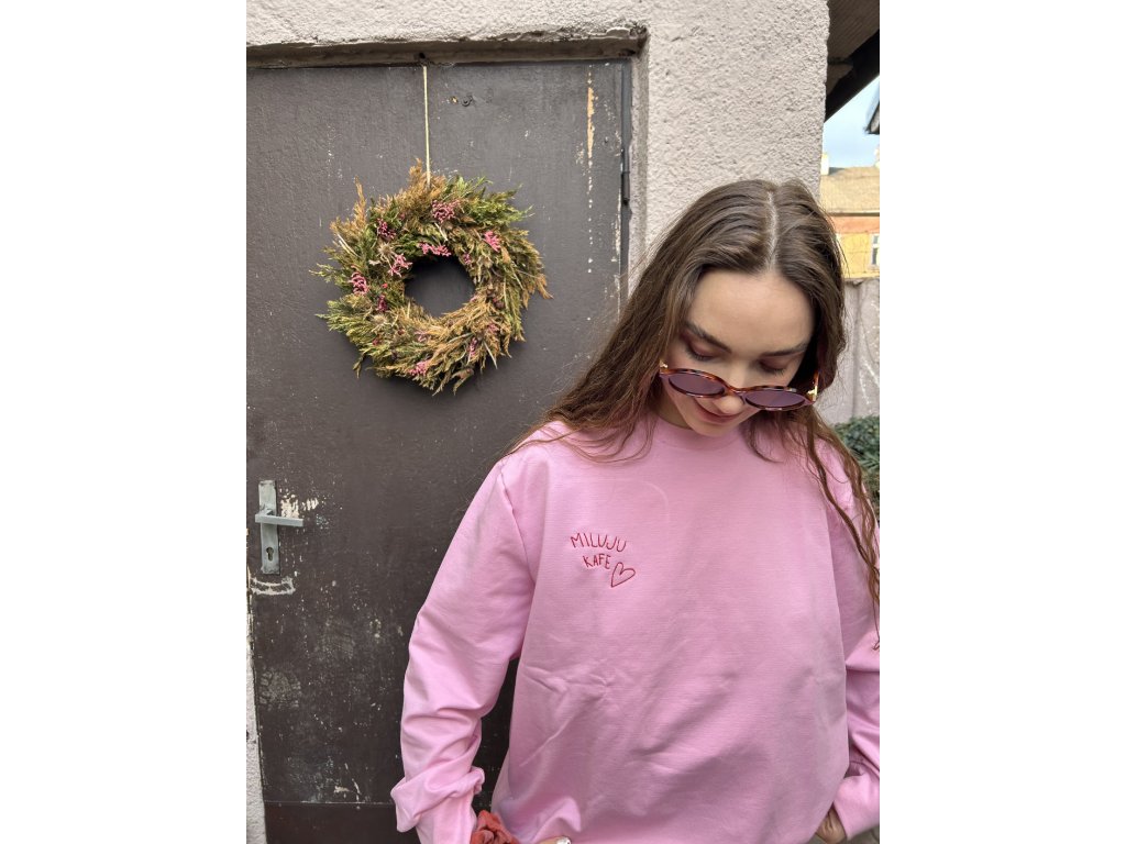 Oversized bavlněná mikina s výšivkou MILUJU KAFE.