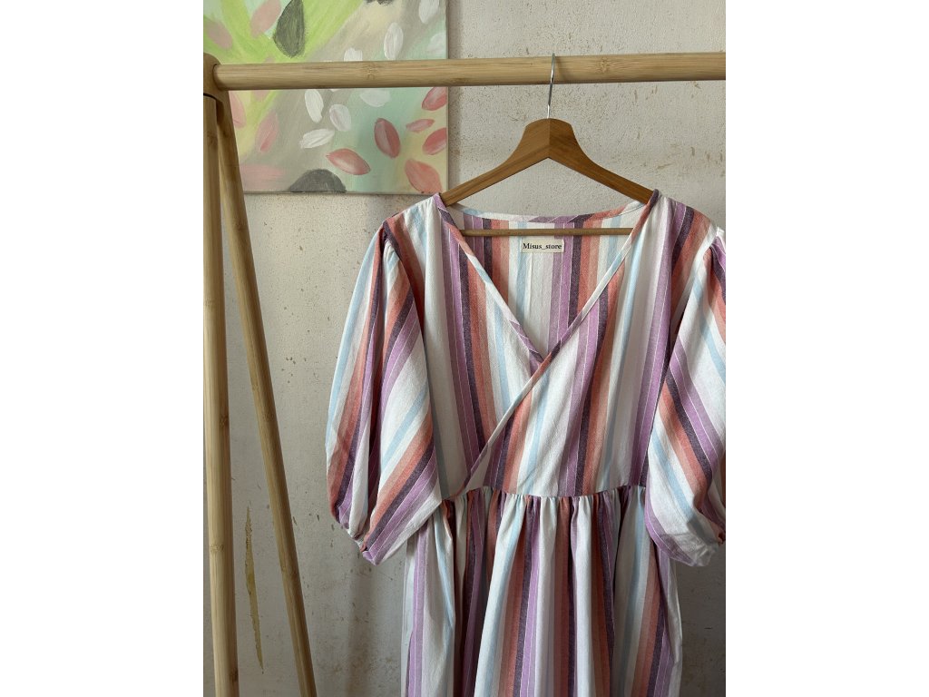 Šaty barevné do fialkova křížené