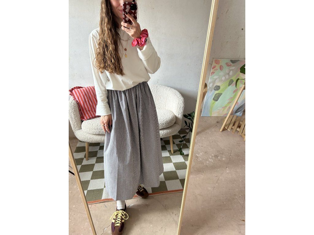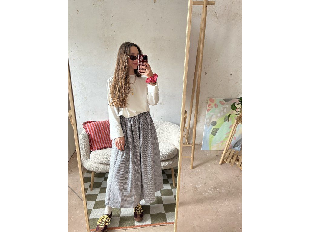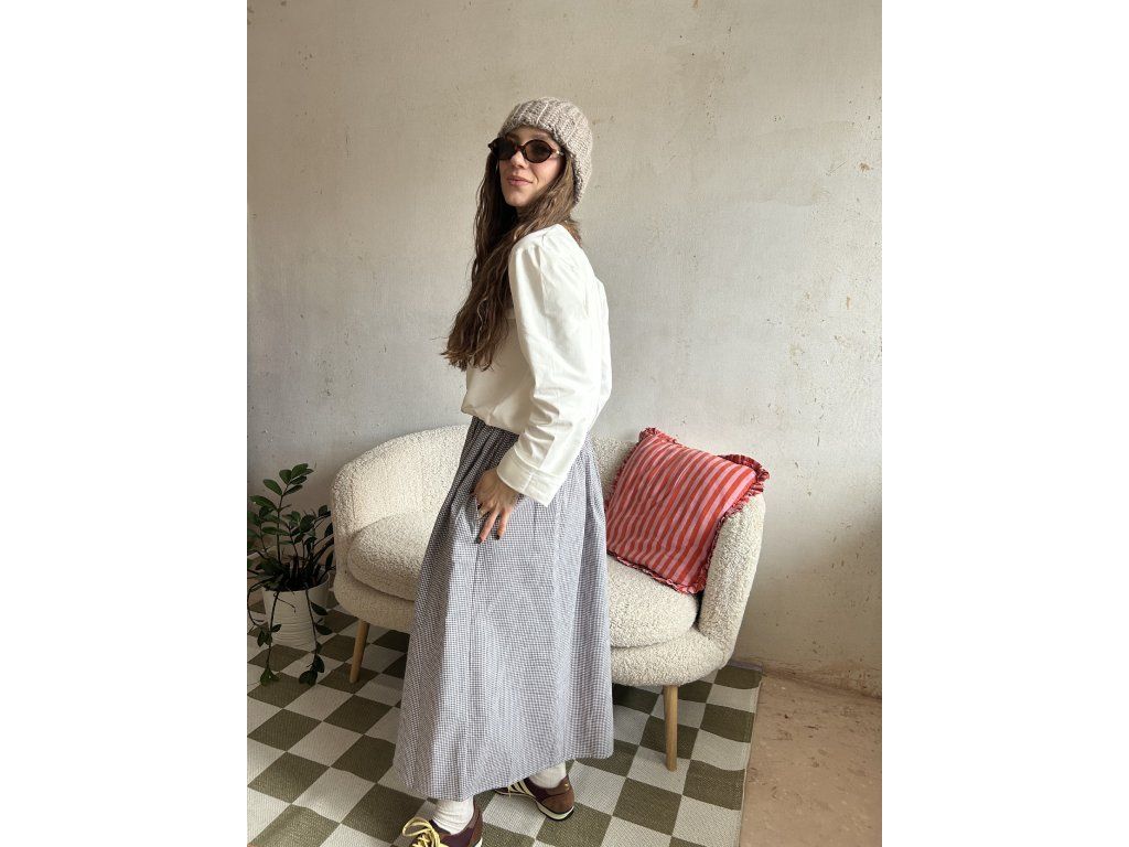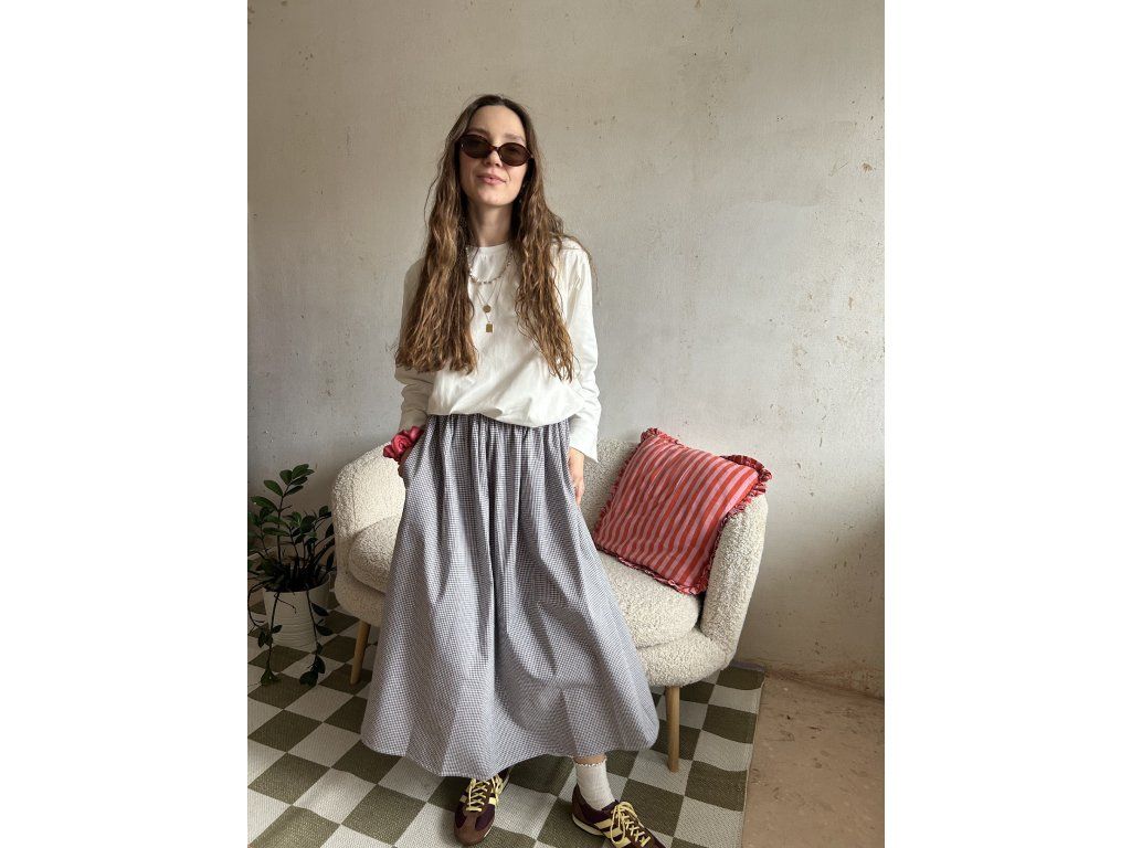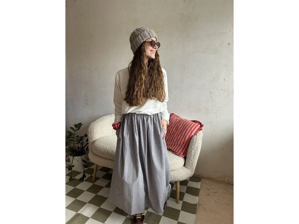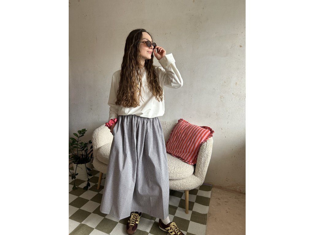 Sukně z bavlněného popelínu, nařasený objemný střih, kapsy po stranách.