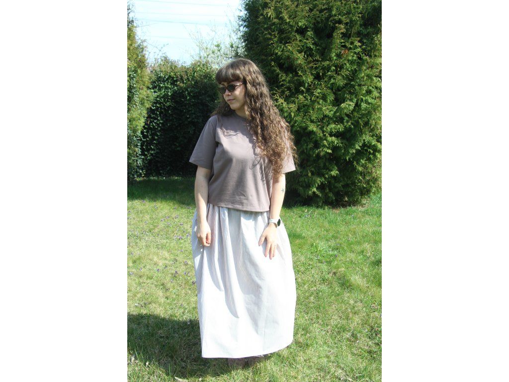 Tričko jsme ušili v jedné v jedné univerzální velikosti, menším velikostem sedne oversized, větším více na tělo.