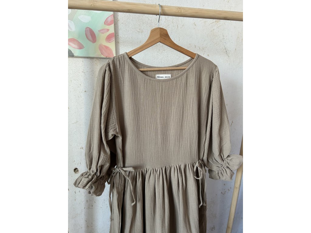 Taupe mušelínové šaty s mašličkama