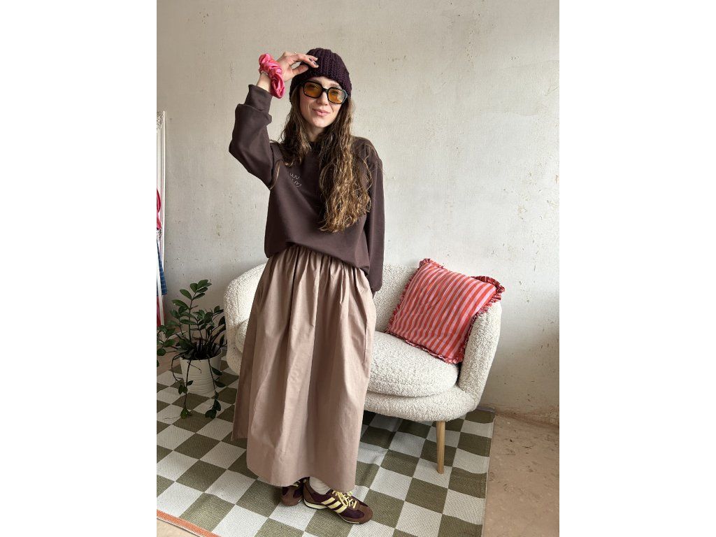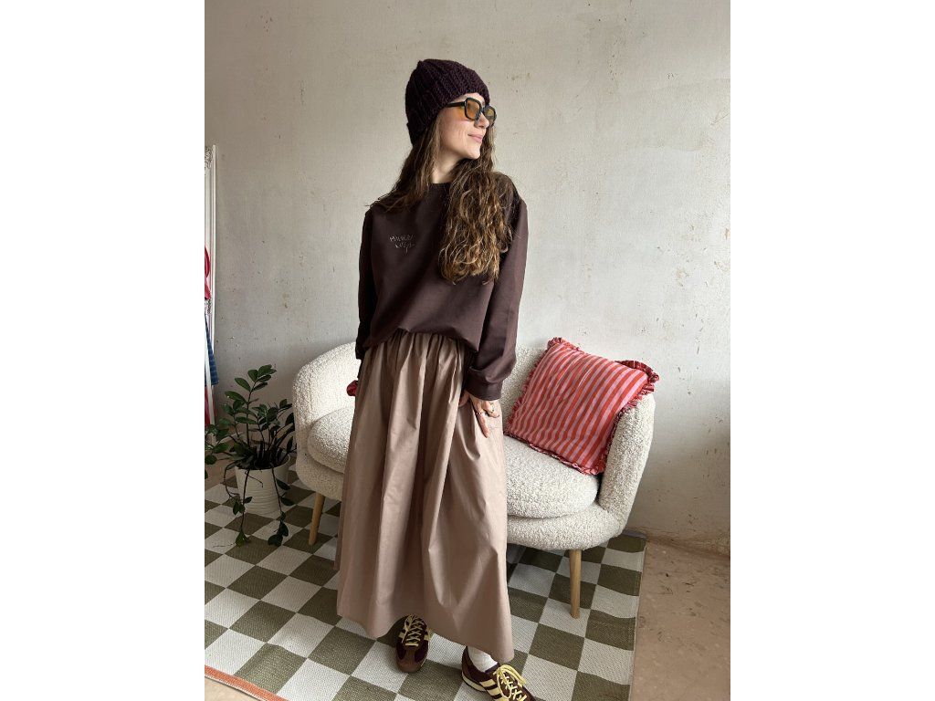 Sukně z bavlněného popelínu, nařasený objemný střih, kapsy po stranách.