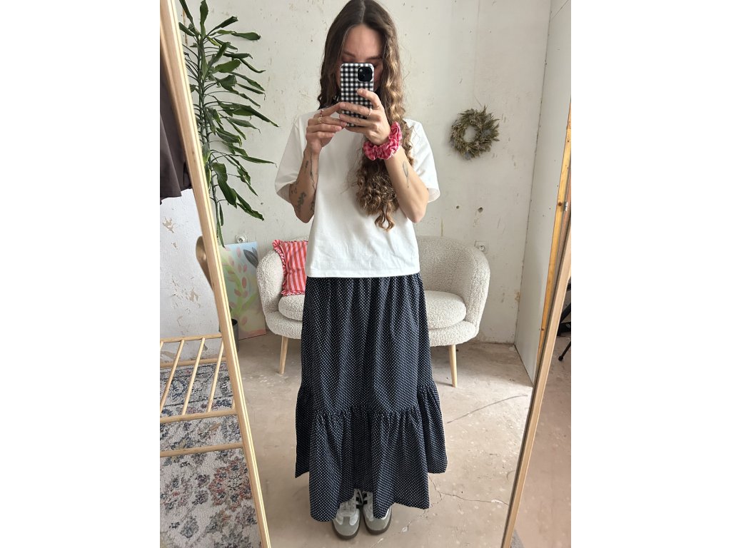 Sukně jsou foceny na mně a Tami, ja mám na sobě menší velikost, měřím 162cm, Tami měří cca 170cm a má na sobě větší velikost.