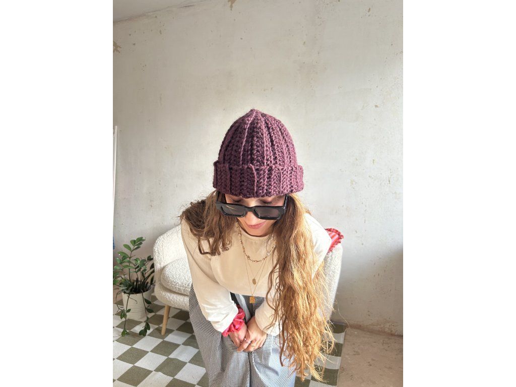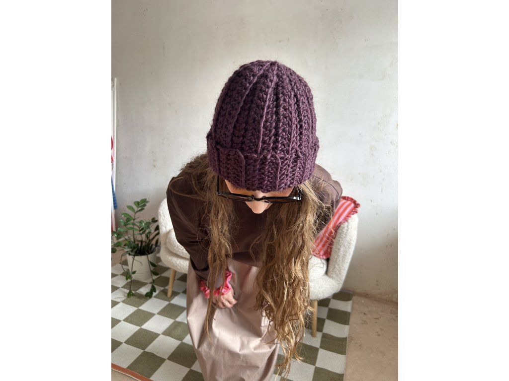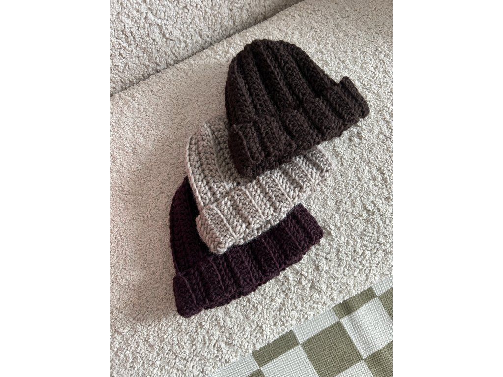 Pohodlná ručně háčkovaná čepice z vlny.