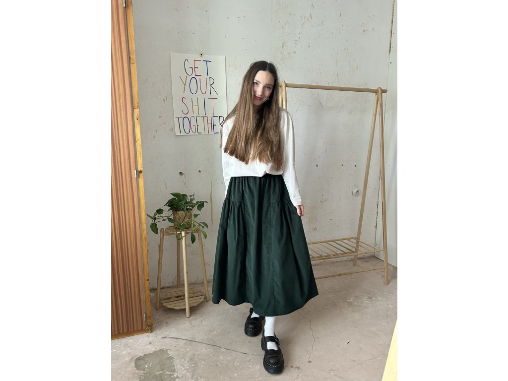 Tmavě zelená sukně z jemného manšestru