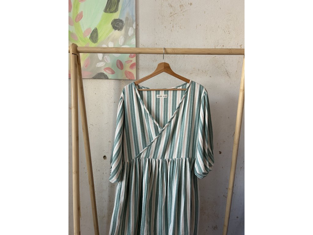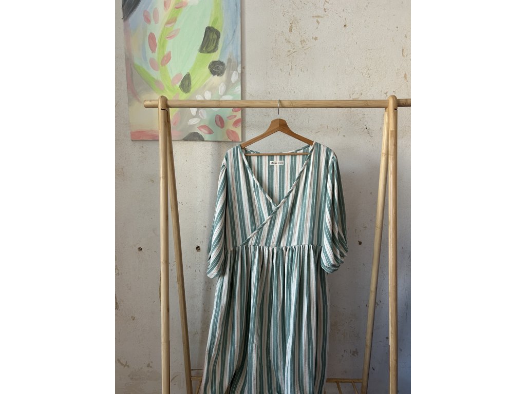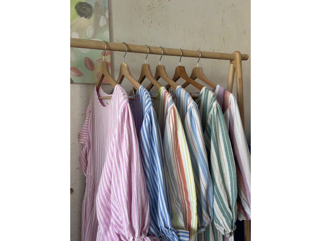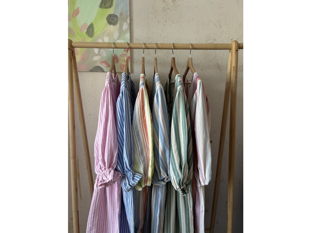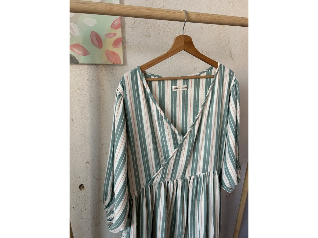 Šaty s balonovými rukávy ušité z bavlněného mušelínu. midi/maxi délka, rukáv s volánkem, sukně s kapsami a klasický top.